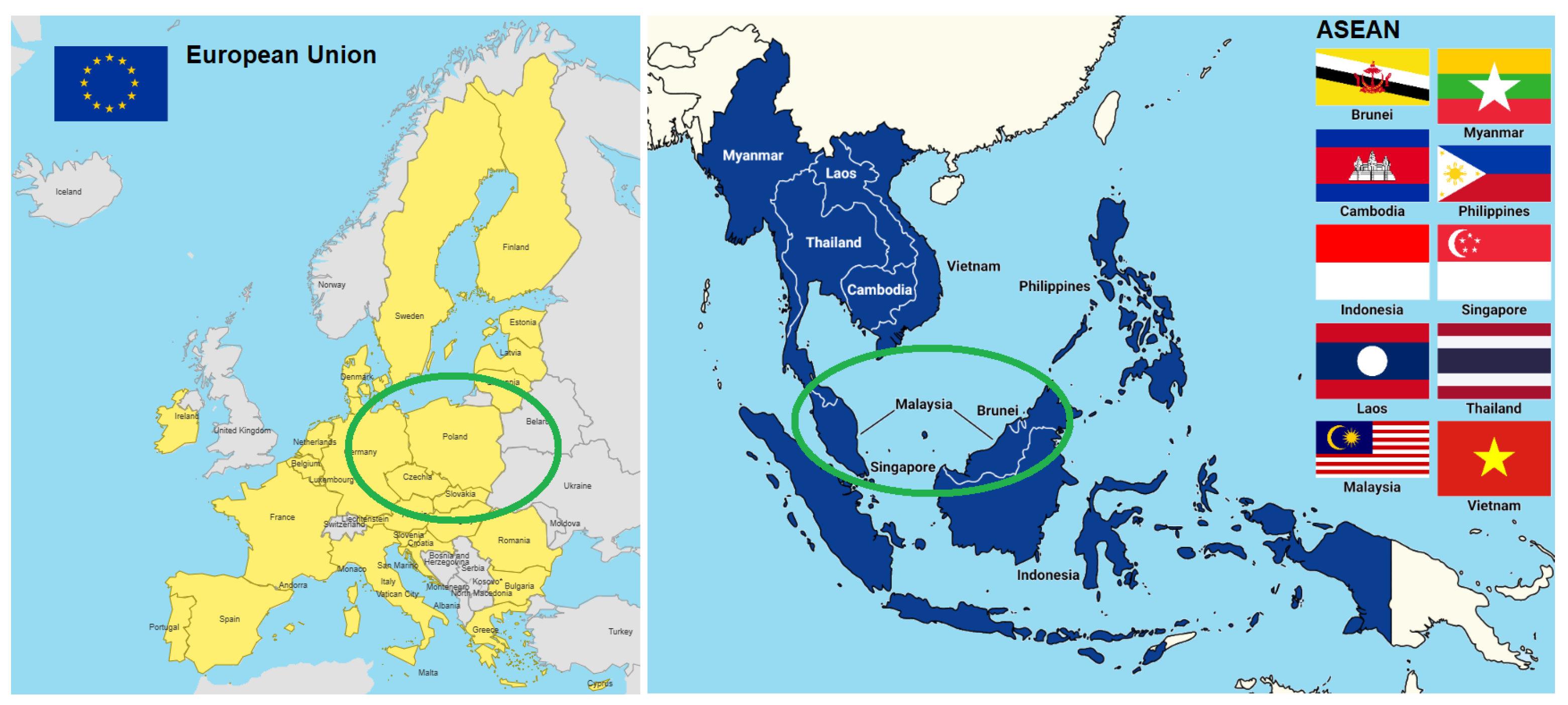 The study presented in this research paper is based on the authors’ international collaboration as researchers from selected countries. Both Poland and Malaysia function as influential and strategically vital members within their respective regional blocs—the European Union (EU) and the Association of Southeast Asian Nations (ASEAN) as presented in