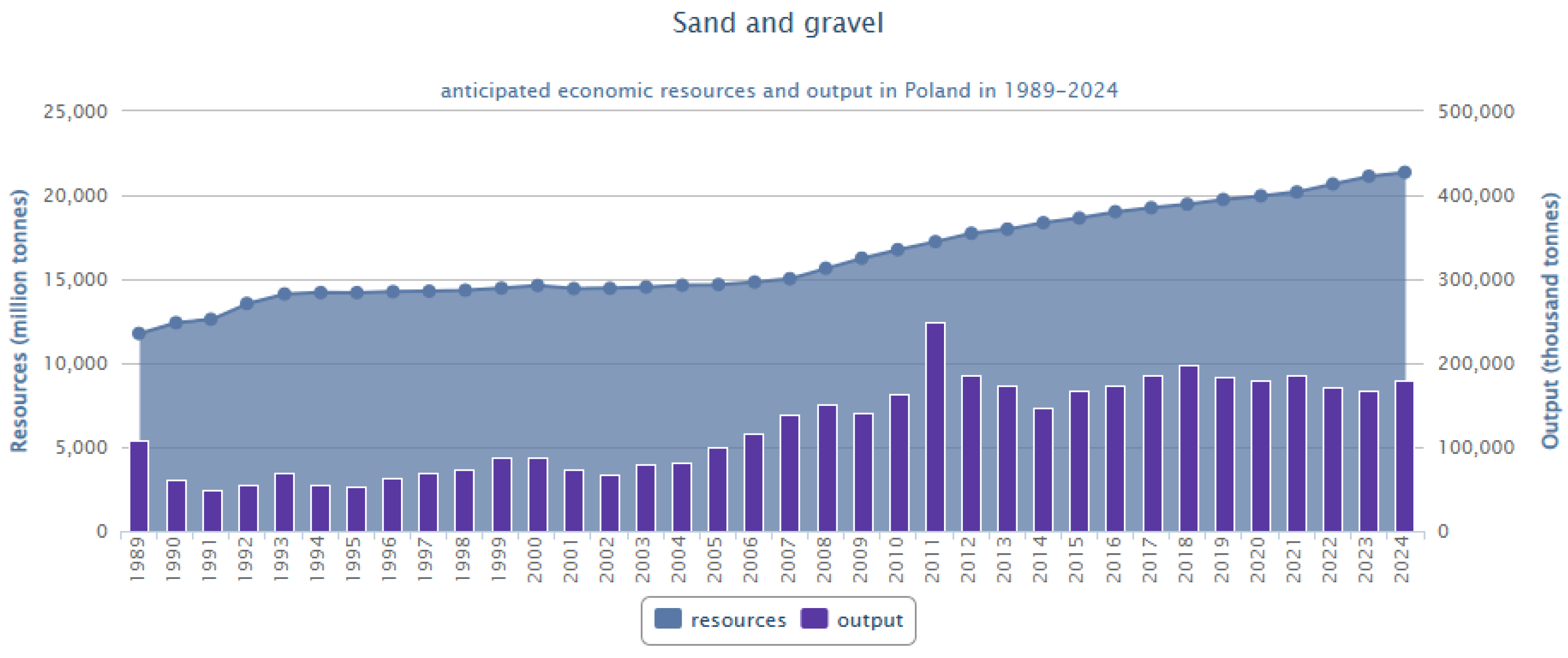 30], sand and gravel mineral aggregates constitute an important share of the total amount of mineral resources.