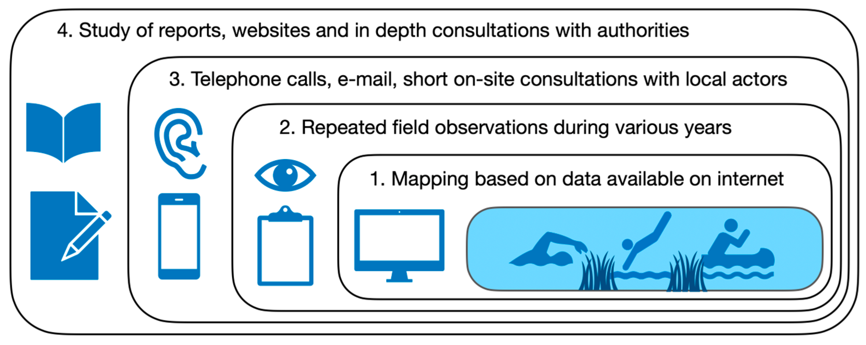 - De Lange, M.; de Haan, M.; Gylstra, R. Huidige wijze van monitoren van fecale bacteriën in zwemwater geeft geen betrouwbaar beeld van actueel gezondheidsrisico zwemmers. H2O Online 31 Okt. 2013. Available online: https://www.h2owaternetwerk.nl/vakartikelen/marieke-de-lange1-martin-de-haan2-en-ronald-gylstra3-1-alterrawageningen-ur-2-royal-haskoning-dhv (accessed on 10 April 2021).