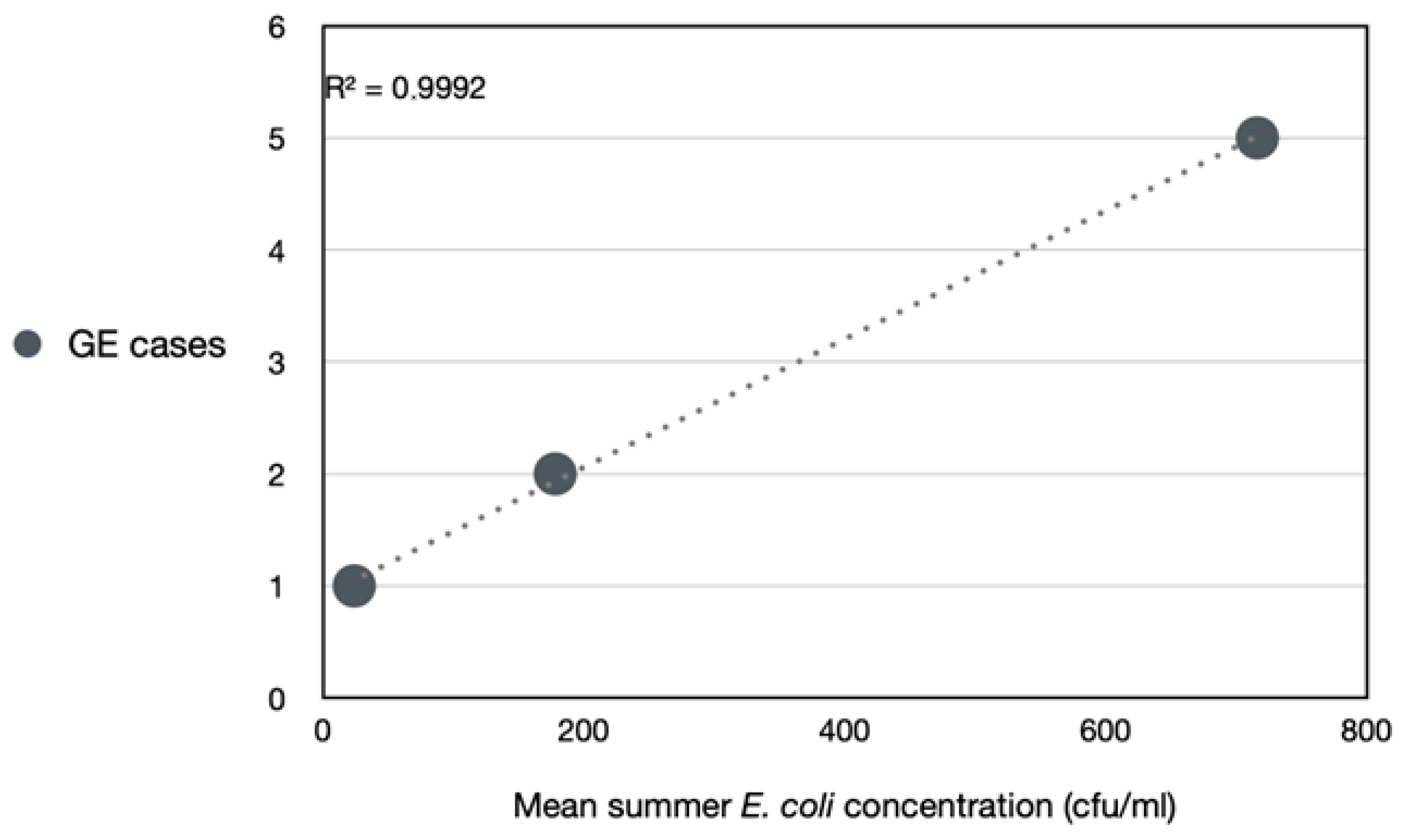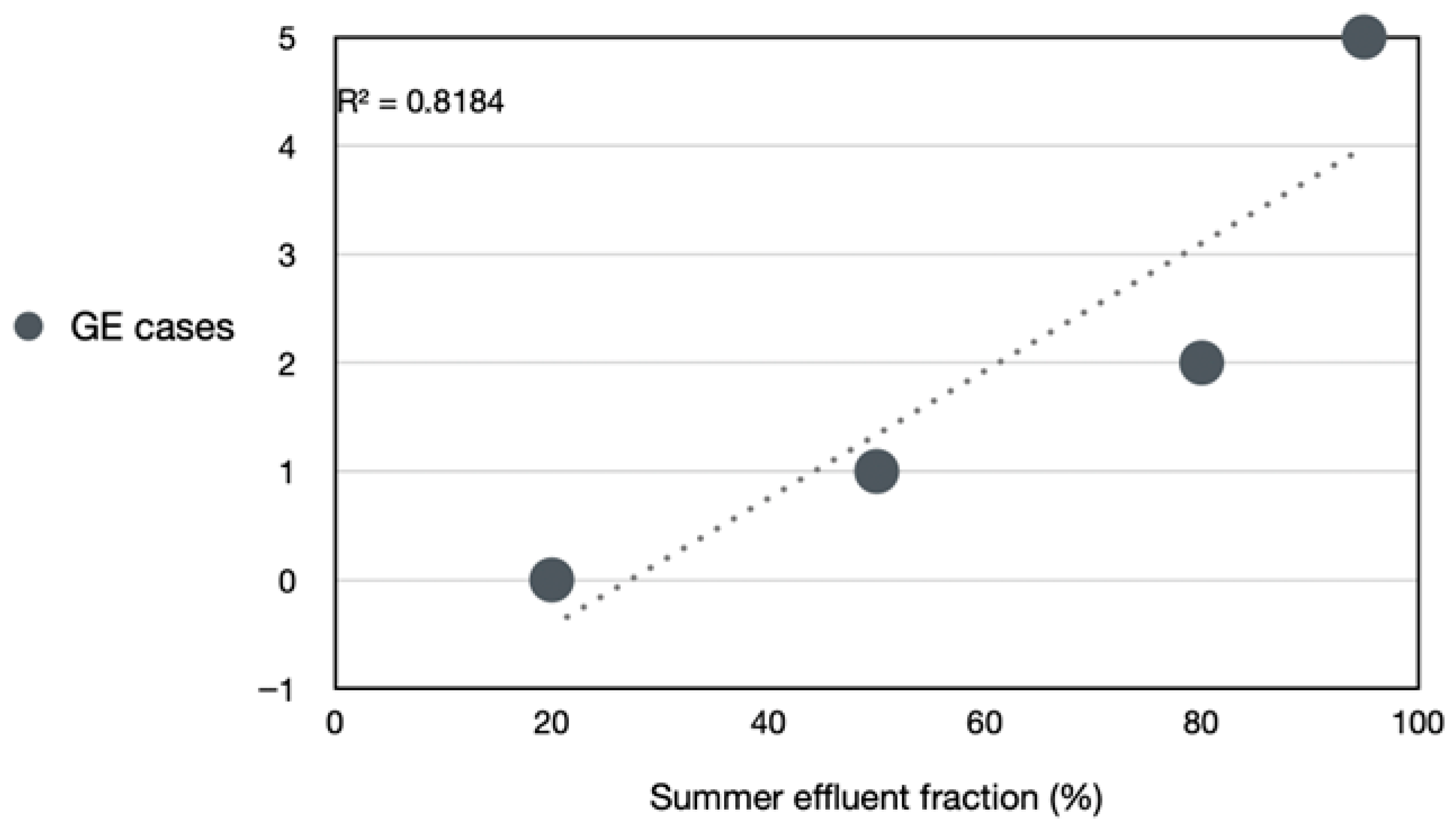 3.4. Wild Swimming Associated Outbreaks in the Study Area