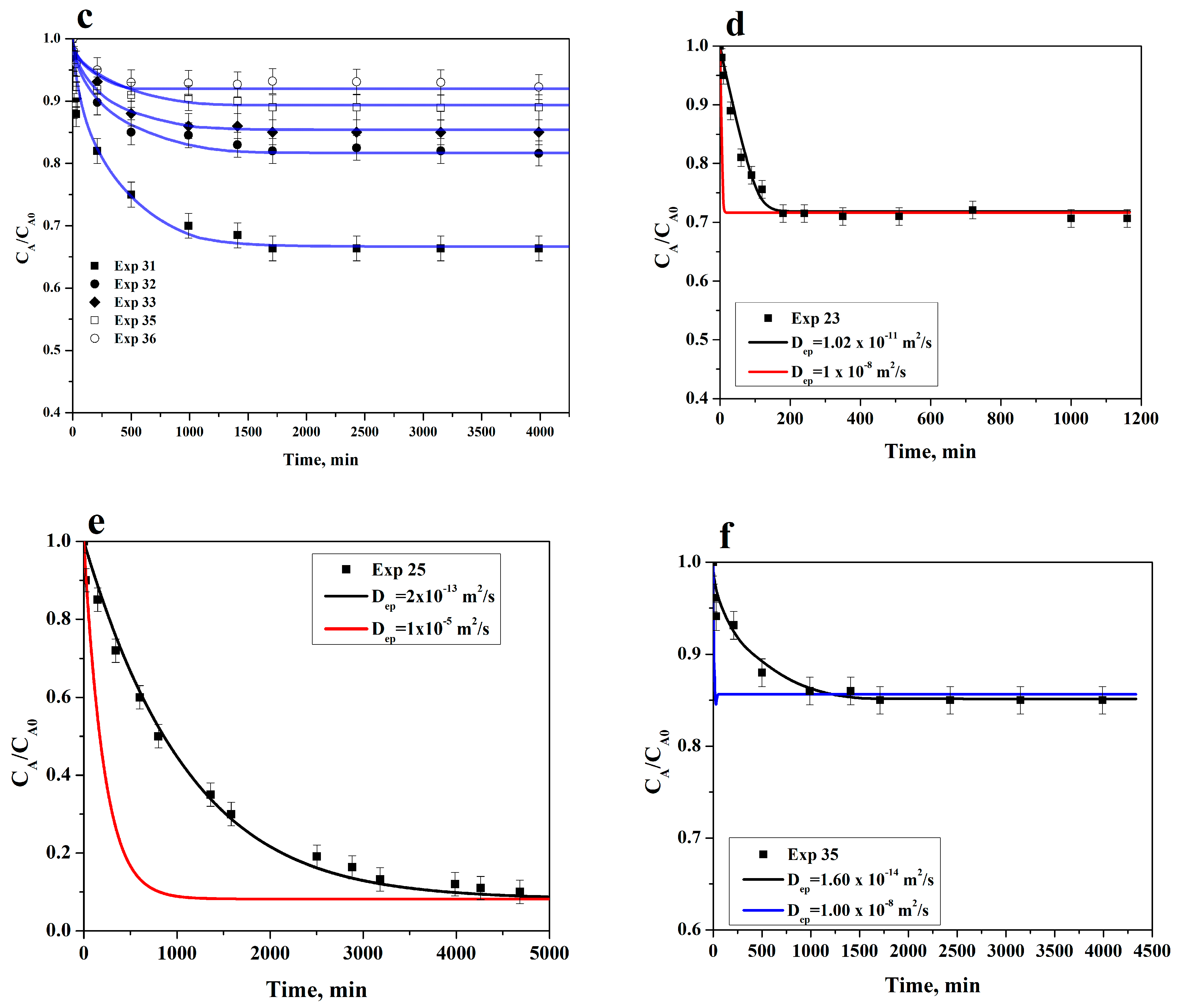 - Leyva-Ramos, R.; Geankoplis, C.J. Model simulation and analysis of surface diffusion of liquids in porous solids. Chem. Eng. Sci. 1985, 40, 799–807. [Google Scholar] [CrossRef]