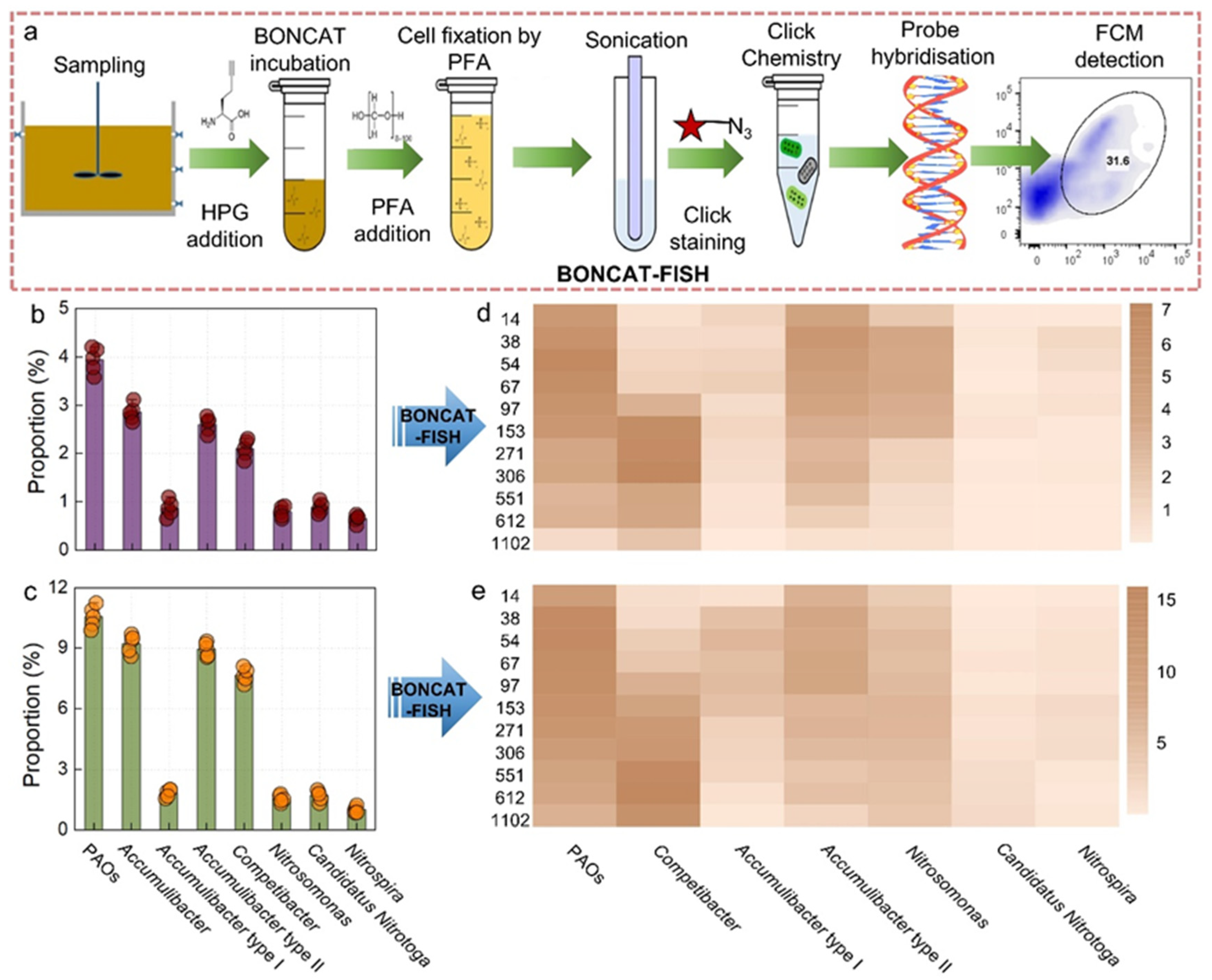 - Du, Z.; Behrens, S.F. Tracking de novo protein synthesis in the activated sludge microbiome using BONCAT-FACS. Water Res. 2021, 205, 117696. [Google Scholar] [CrossRef]