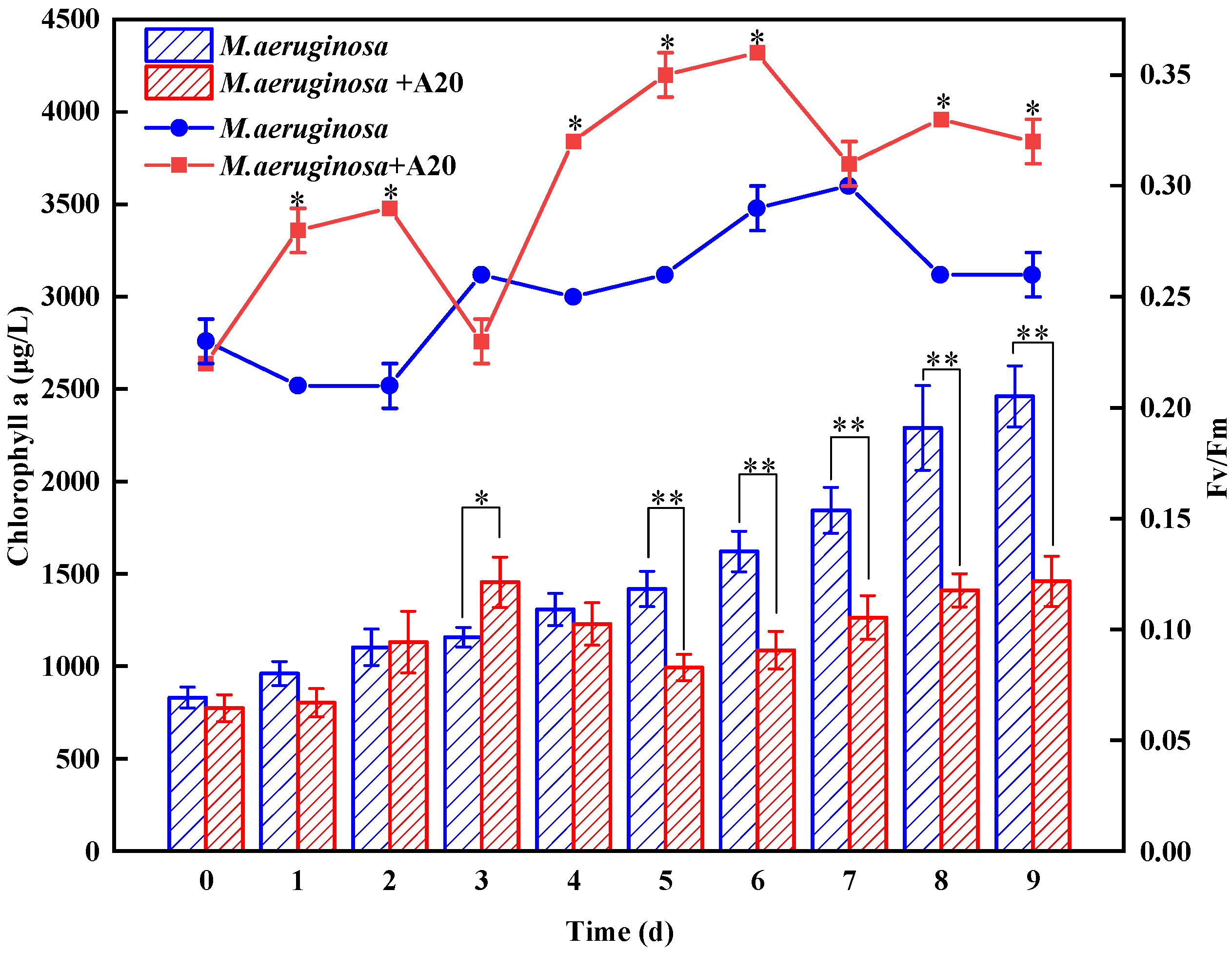 3.2. Effect of A20 on the Growth Trends of Microcystis aeruginosa