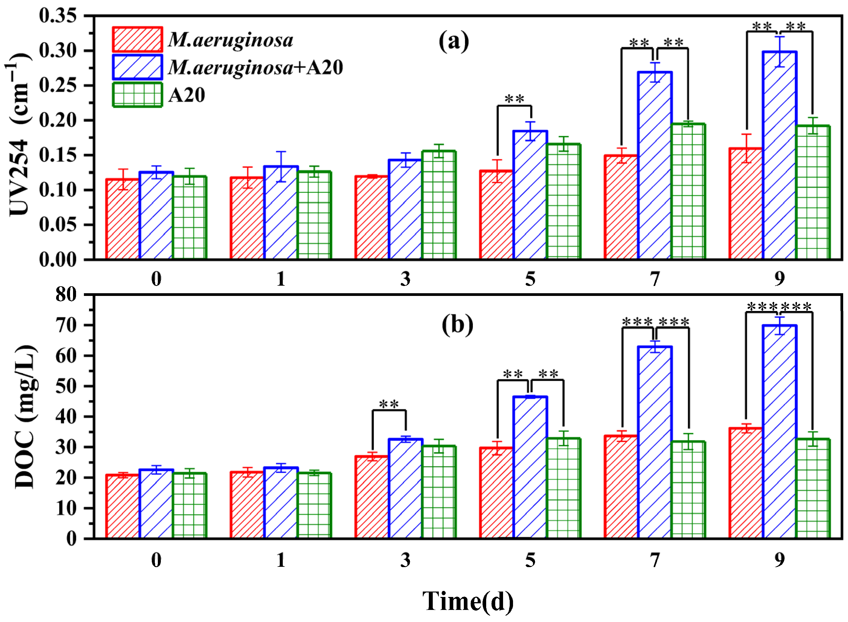 3.3. Effect of A20 on the Metabolic Release Capacity of Microcystis aeruginosa