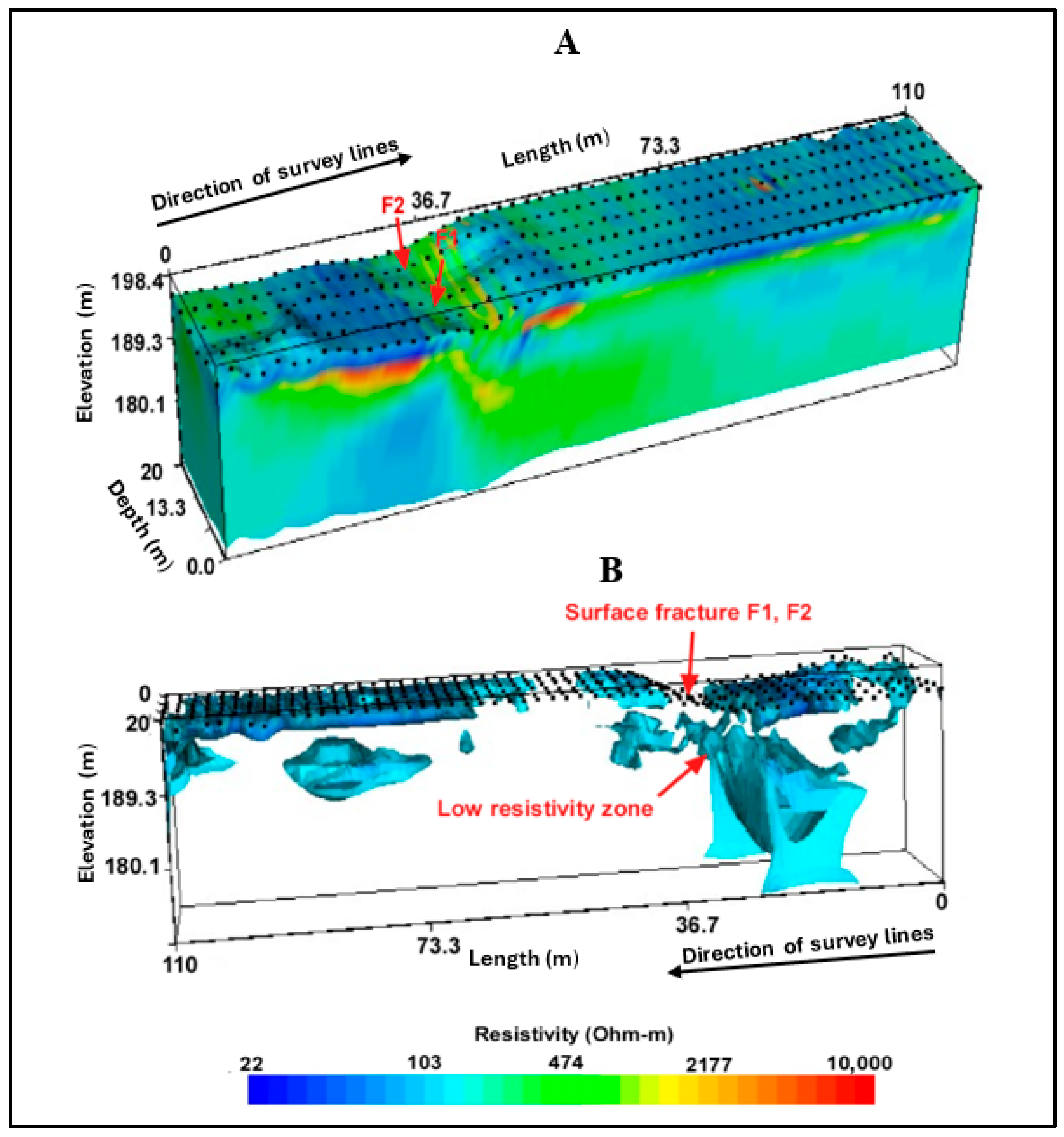 APA StyleAjayi, T., Yelderman, J. C., Jr., & Dunbar, J. (2025). Integrating 2D and Pseudo-3D Electrical Resistivity Imaging to Determine the Recharge Potential of Karst Surface Fractures: An Example in the Northern Segment of the Edwards Balcones Fault Zone (BFZ) Aquifer. Water, 17(23), 3439. https://doi.org/10.3390/w17233439