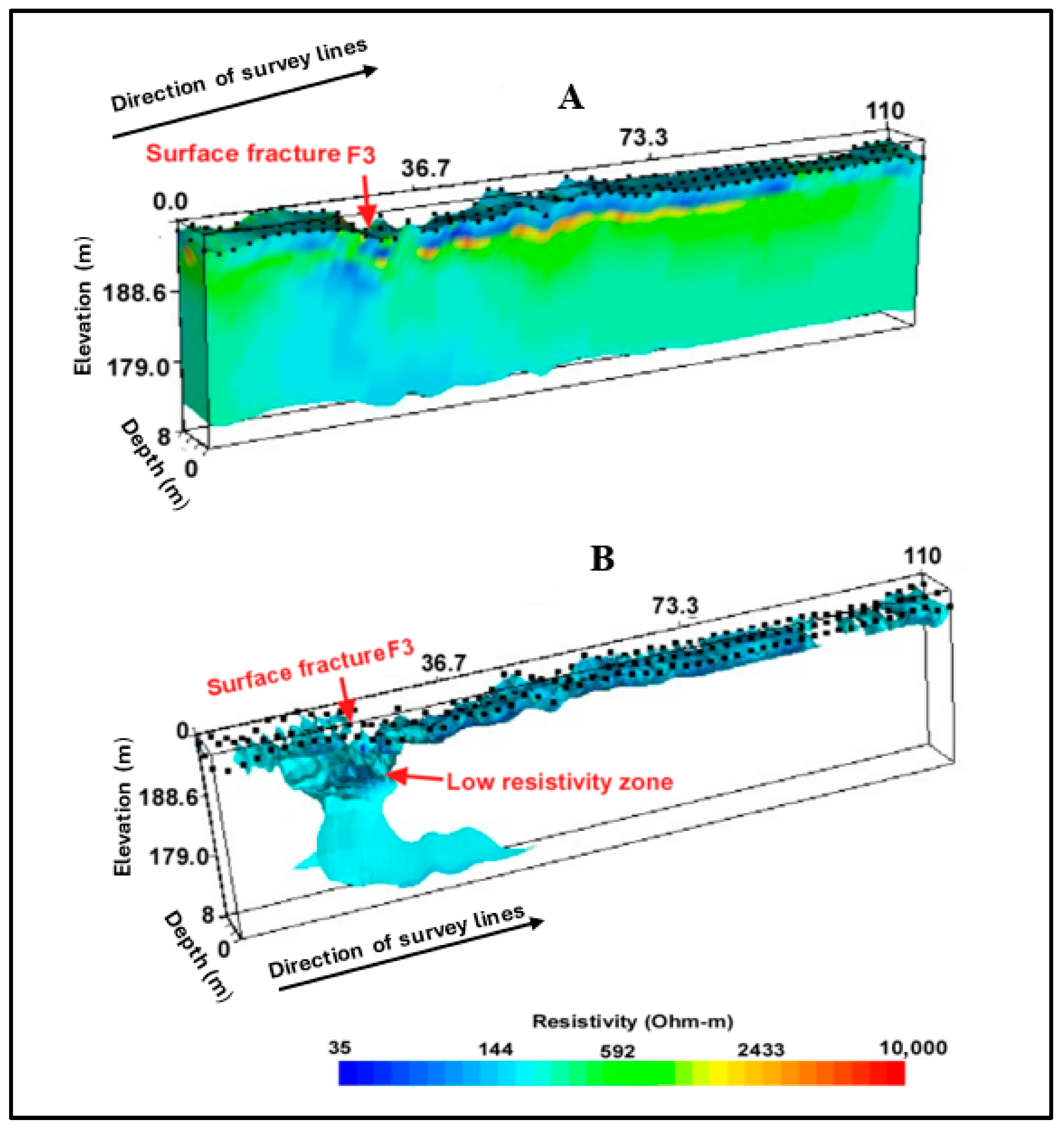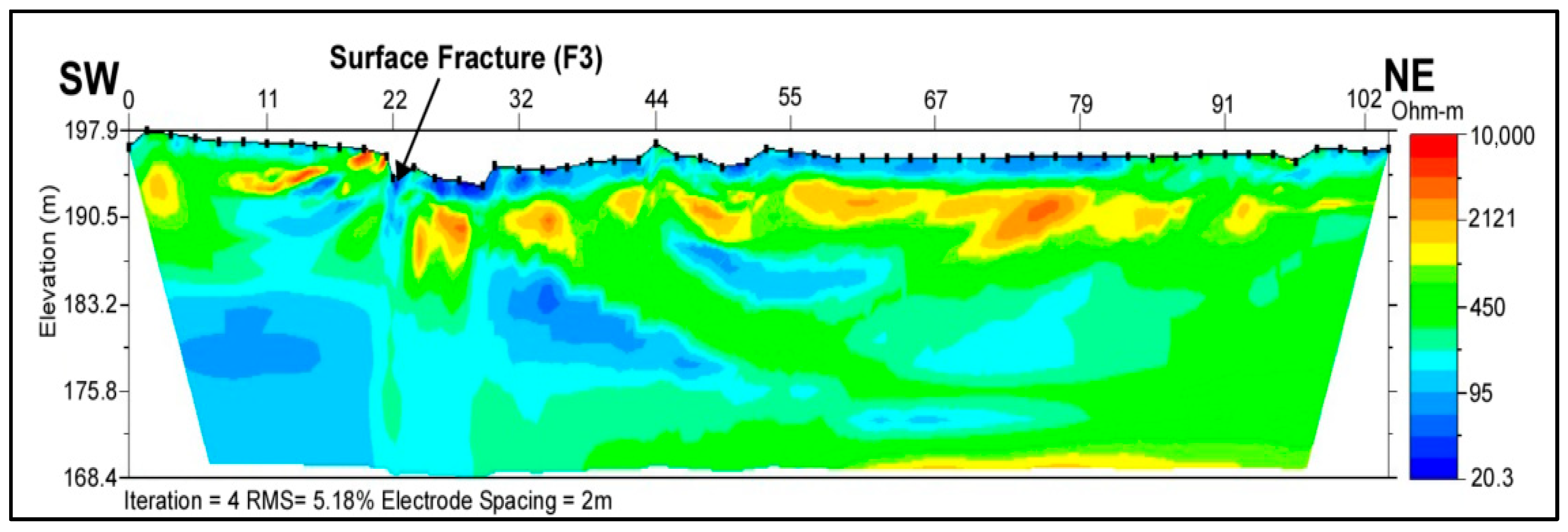 - Land, L.; Veni, G. Electrical resistivity surveys of anthropogenic karst phenomena, southeastern New Mexico. Geology 2012, 34, 117–125. [Google Scholar] [CrossRef]