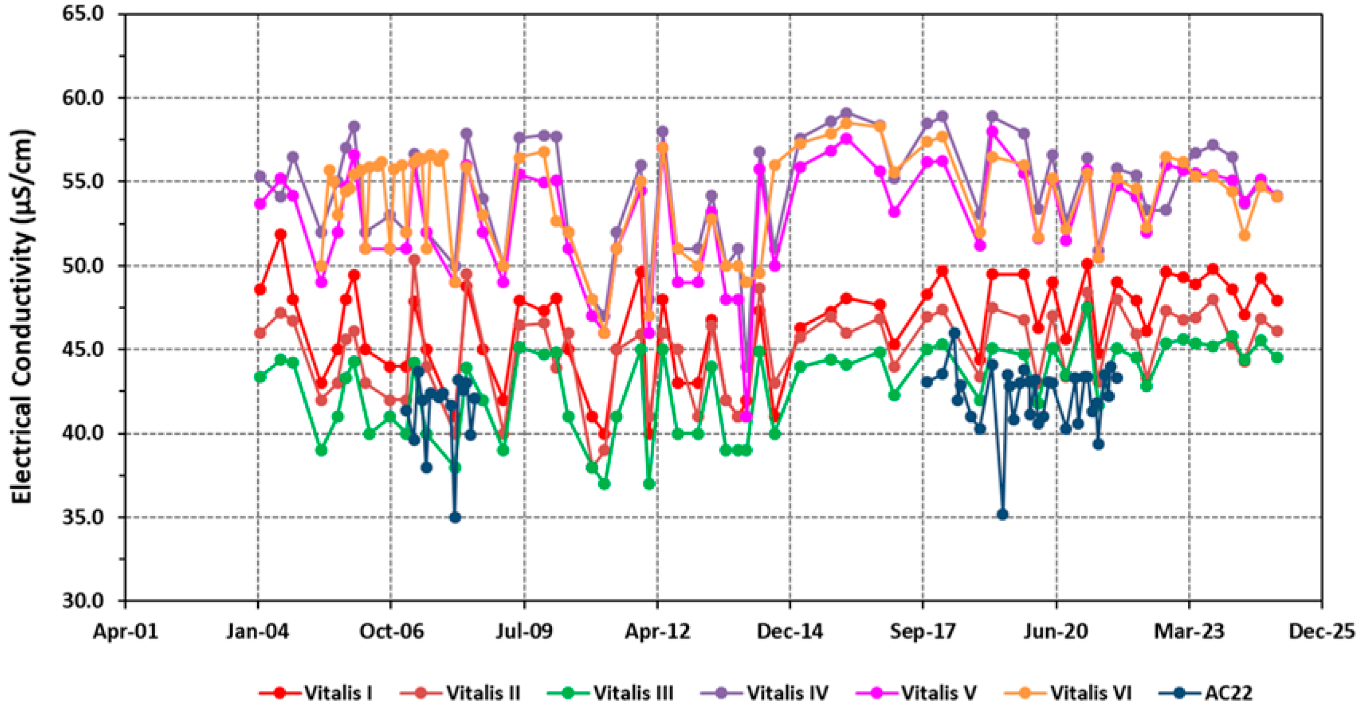 | Borehole | Vitalis I | Vitalis II | Vitalis III | Vitalis VI | Vitalis V | Vitalis VI |