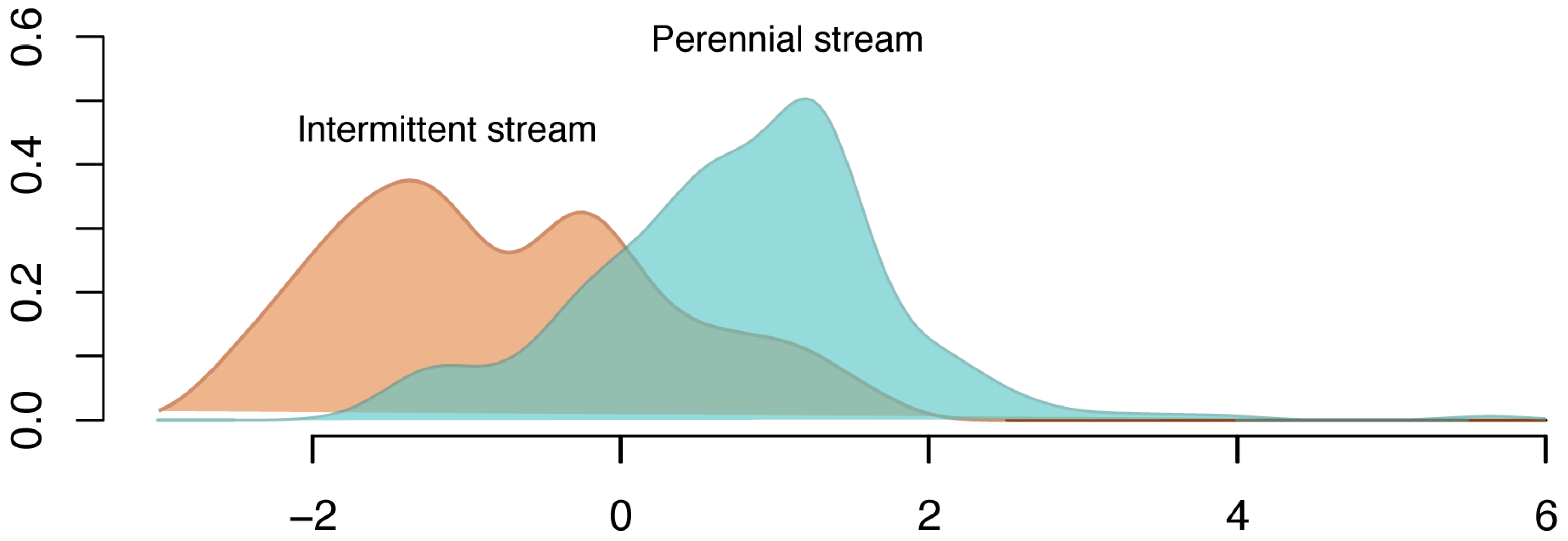 3.2. Differentiating Drivers of Perennial and Intermittent Flow Regimes