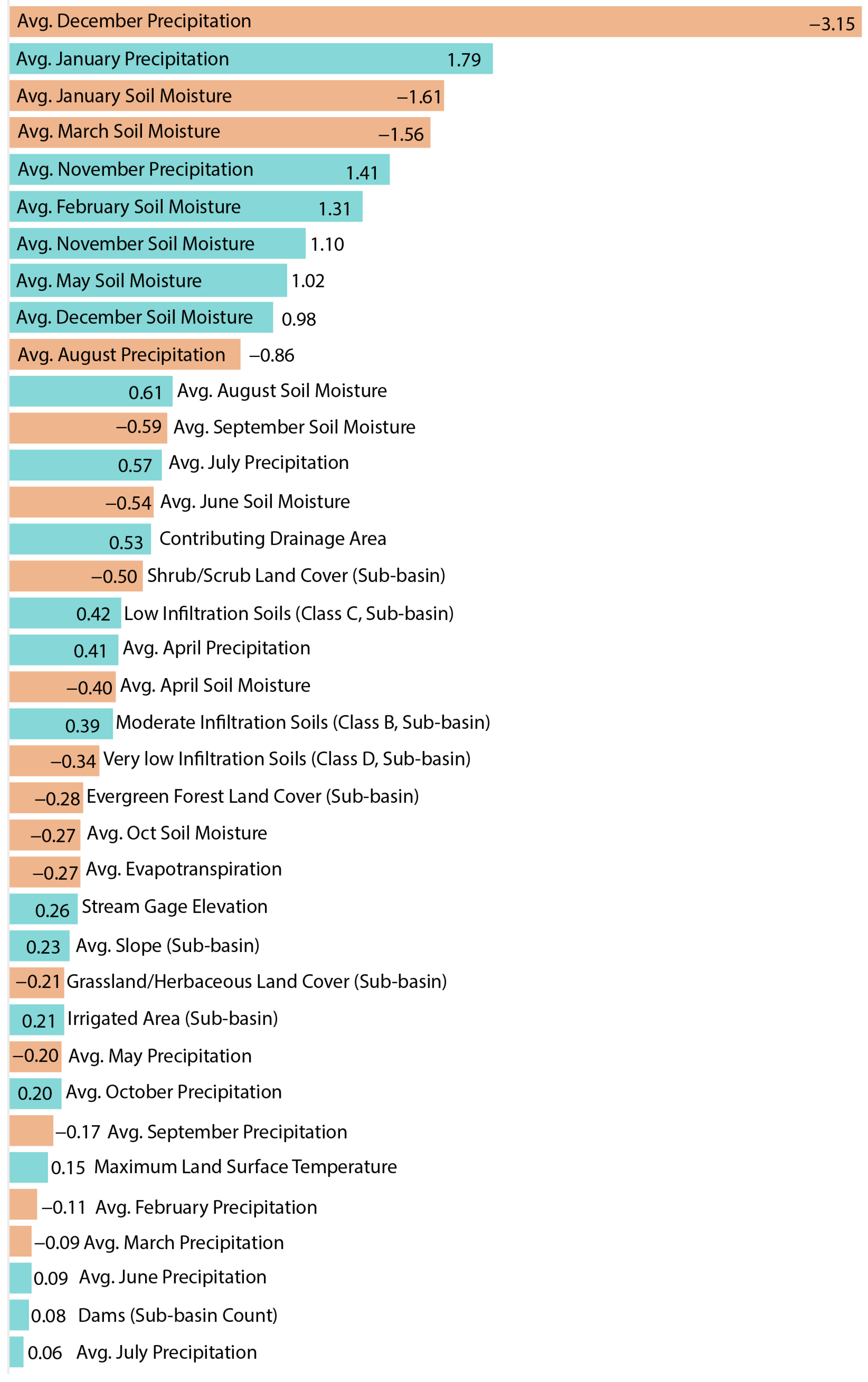 | Precipitation* | PRISM-average monthly 30-year normal precipitation dataset (CONUS). Values were averaged across each gage sub-basin (HUC 8) [52]. | 800 m |