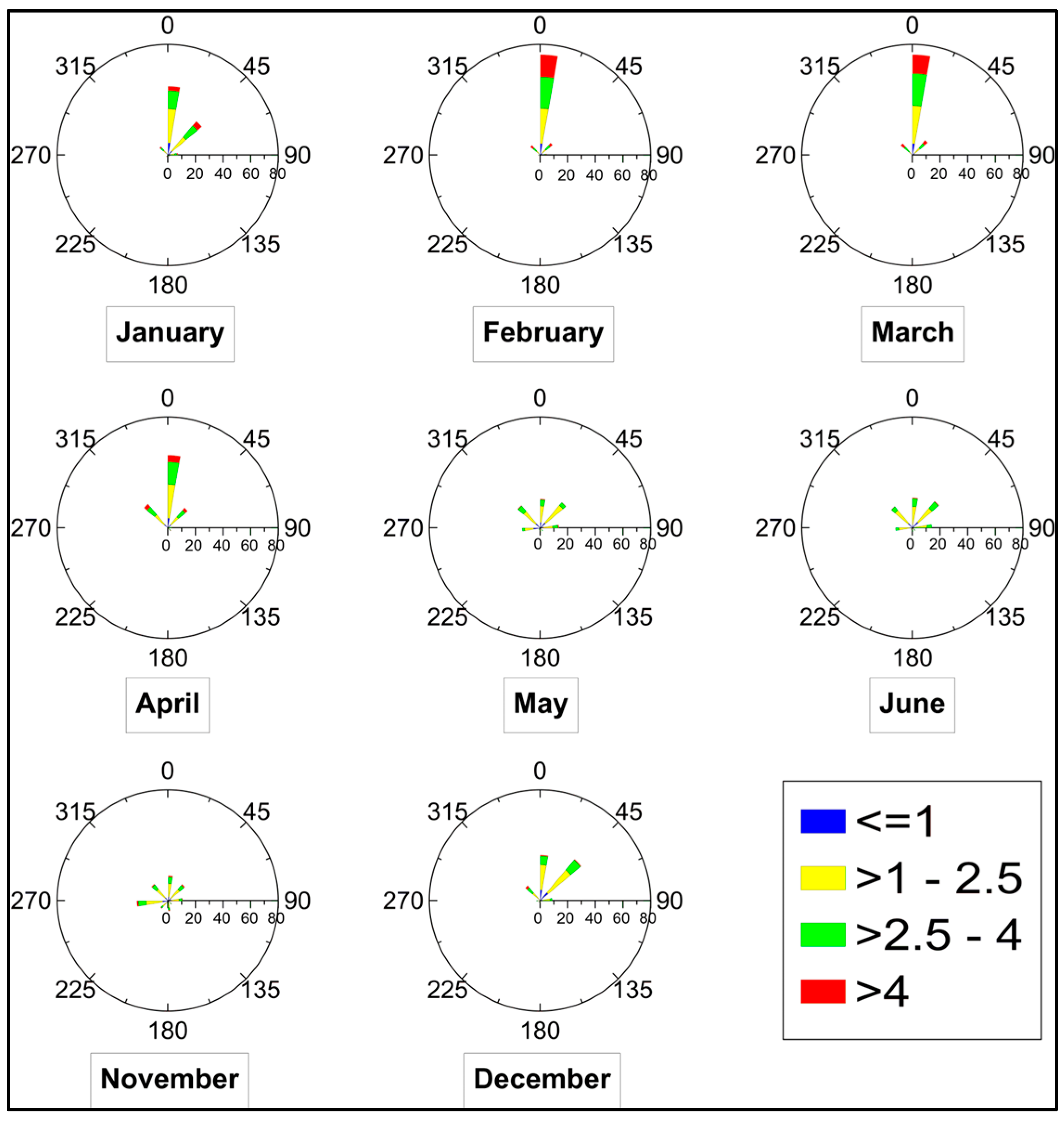 3.4. Turbidity Spatial Distribution in Cartagena Bay