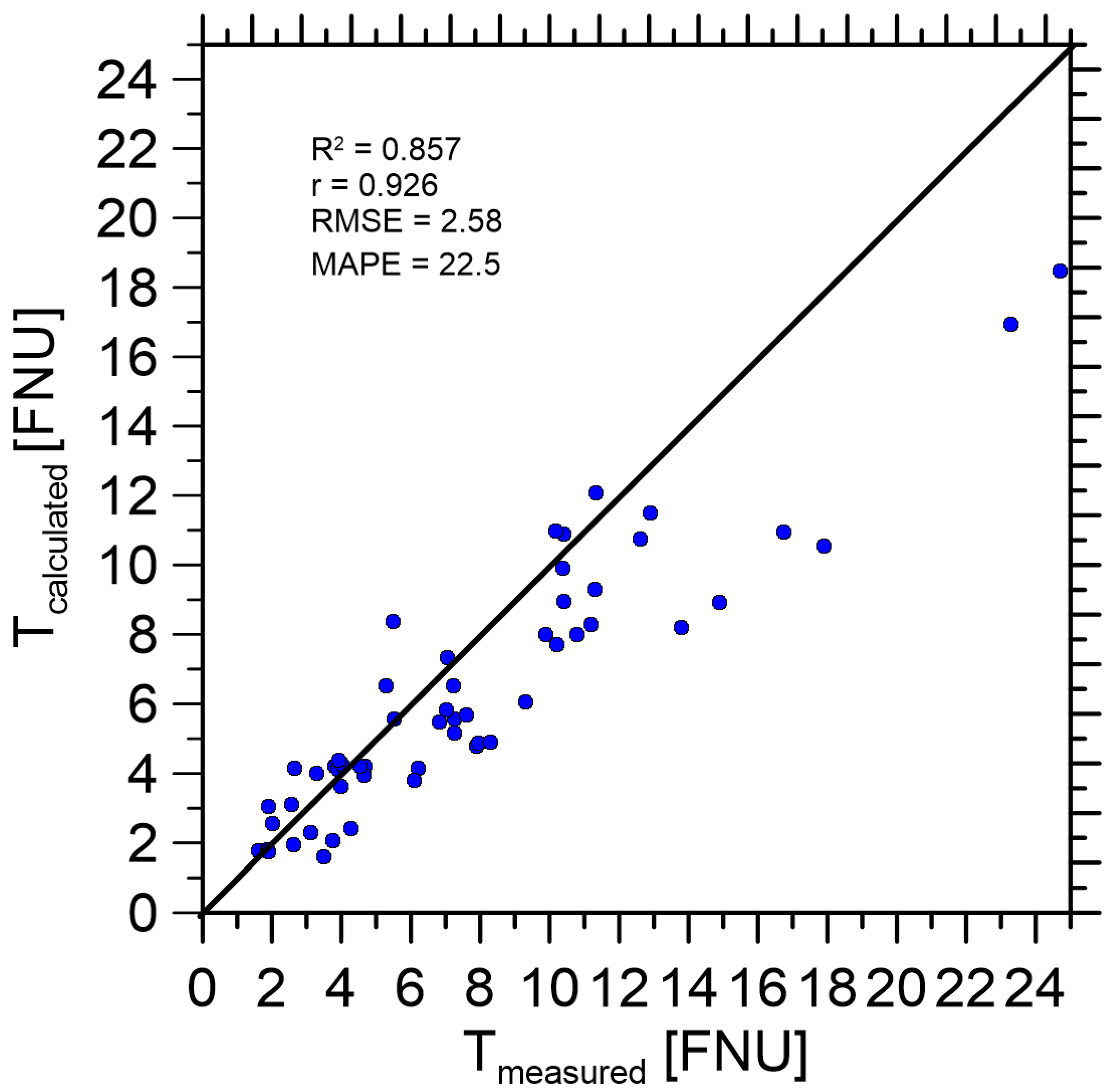 - Constantin, S.; Doxaran, D.; Constantinescu, S. Estimation of water turbidity and analysis of its spatio-temporal variability in the Danube River plume (Black Sea) using MODIS satellite data. Cont. Shelf Res. 2016, 112, 14–30. [Google Scholar] [CrossRef]