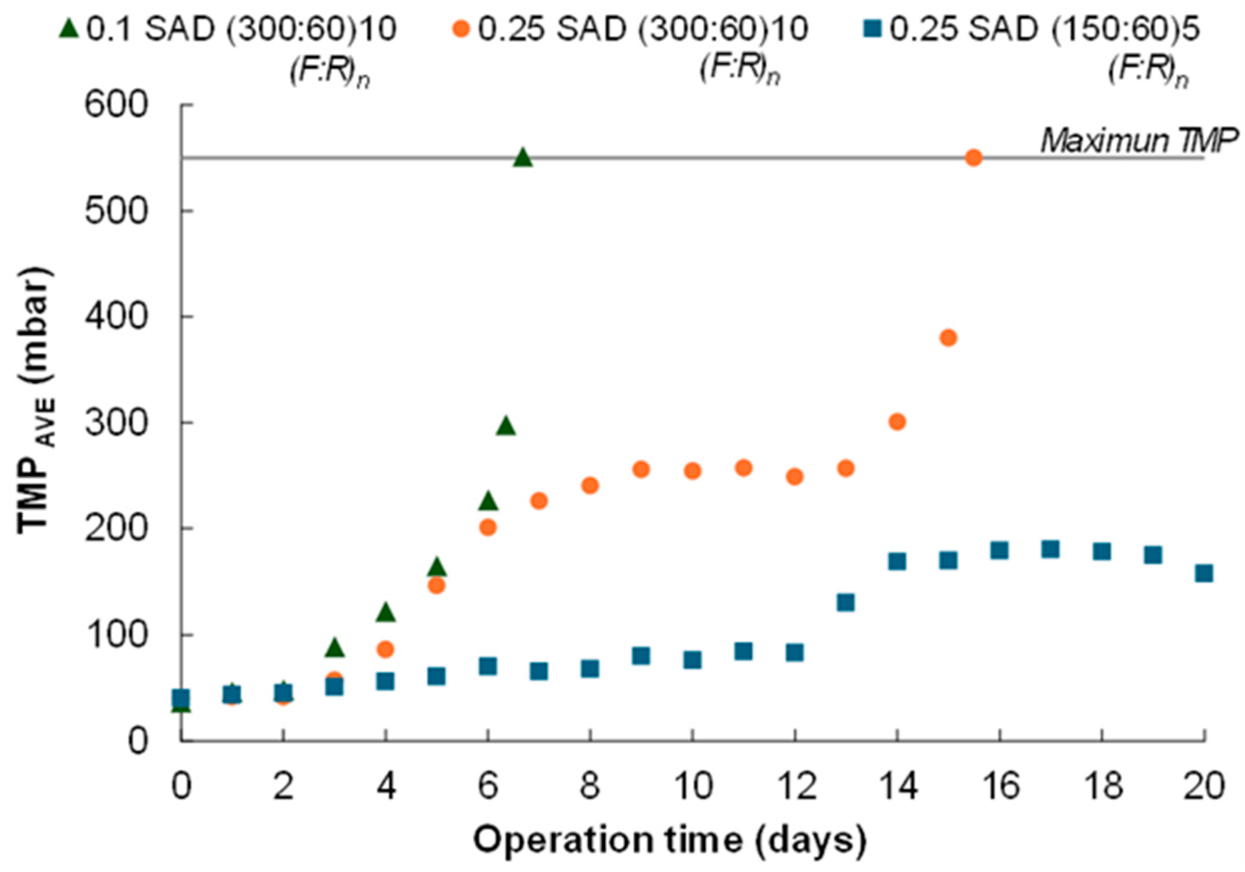 | SMP/TSS ratio (mg COD g TSS−1) | 320.8 | 34.0 | 35.0 |