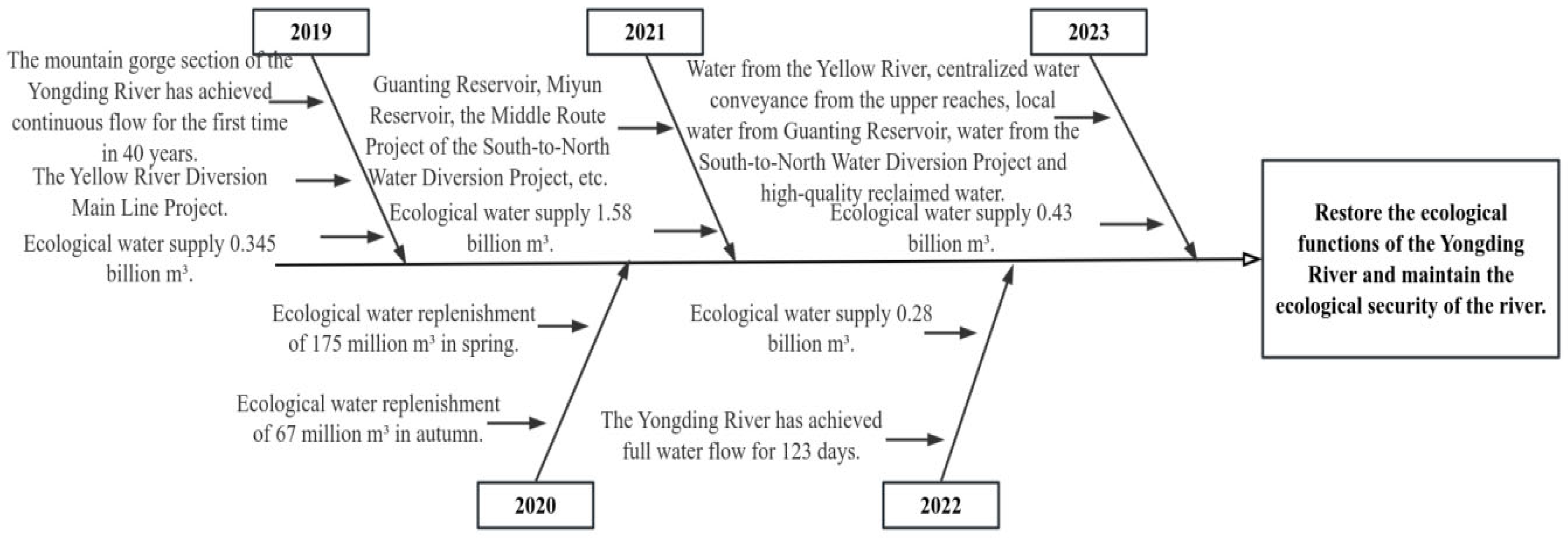 - Gong, X.Y.; Zhang, M.M.; Zhang, Y.L. Integrated Management and Ecological Restoration Practices of the Yongding River. Water Resour. Dev. Manag. 2024, 10, 60–63. [Google Scholar] [CrossRef]