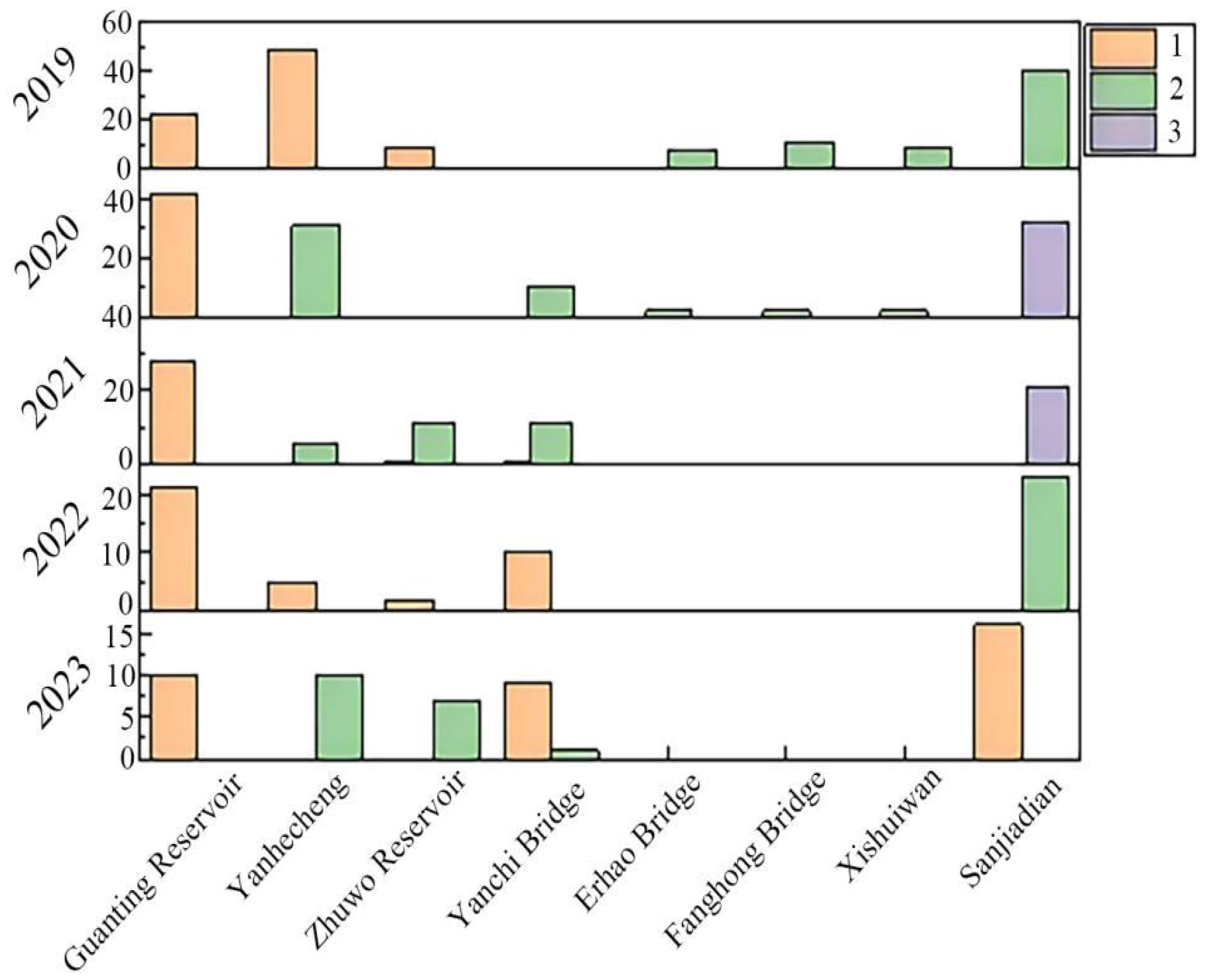 | Year | Non-Water Replenishment and Non-Flood Season | The Water Replenishment Period Is Not the Flood Season | Non-Water Replenishment Flood Season | Water Replenishment During the Flood Season |