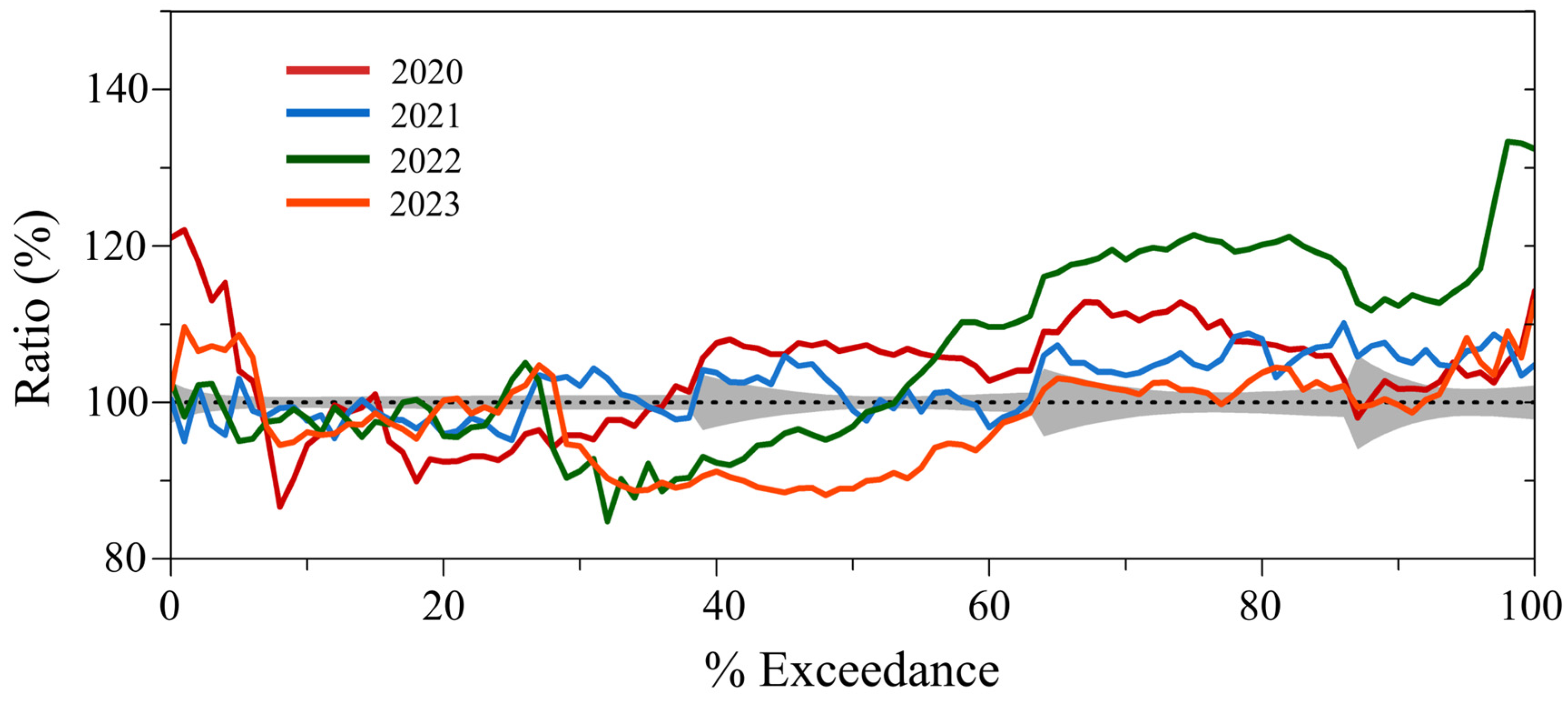 3.3. Flow Duration Curves Based on Observed/Estimated Ratios