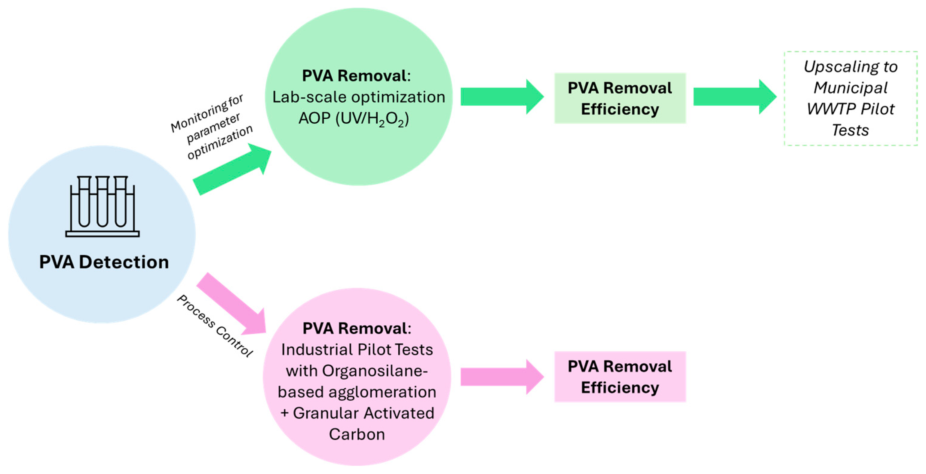 Sturm, M.T.; Korzin, A.; Ronsse, P.; Kormelinck, K.G.; Myers, E.; Zernikel, O.; Schober, D.; Schuhen, K. Spectrophotometric Polyvinyl Alcohol Detection and Validation in Wastewater Streams: From Lab to Process Control. Water 2025, 17, 3465. https://doi.org/10.3390/w17243465