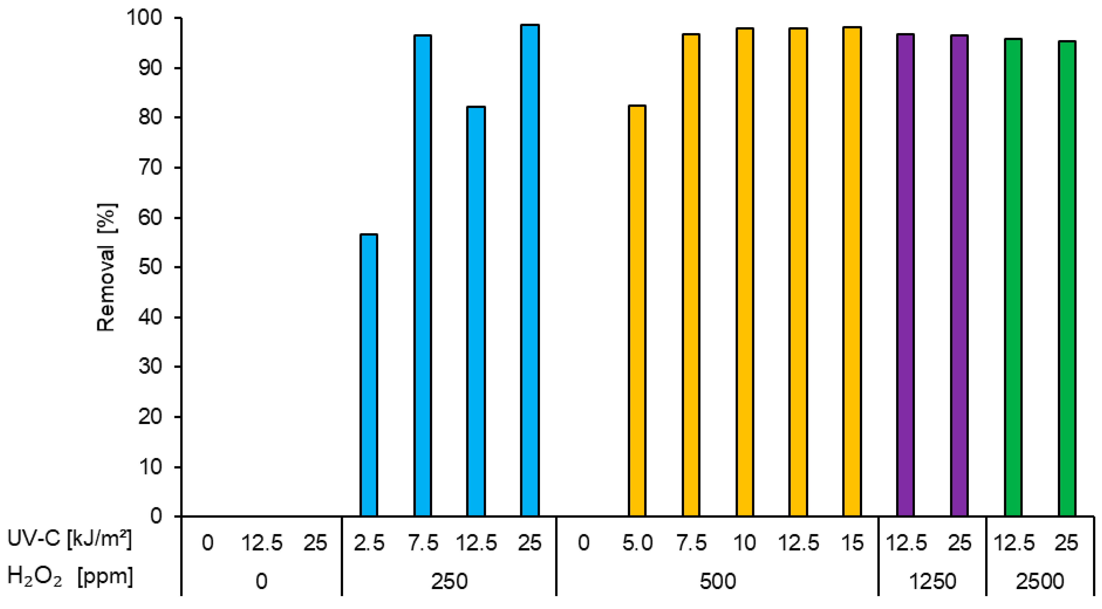 - Wols, B.A.; Harmsen, D.; van Remmen, T.; Beerendonk, E.F.; Hofman-Caris, C. Design aspects of UV/H2O2 reactors. Chem. Eng. Sci. 2015, 137, 712–721. [Google Scholar] [CrossRef]