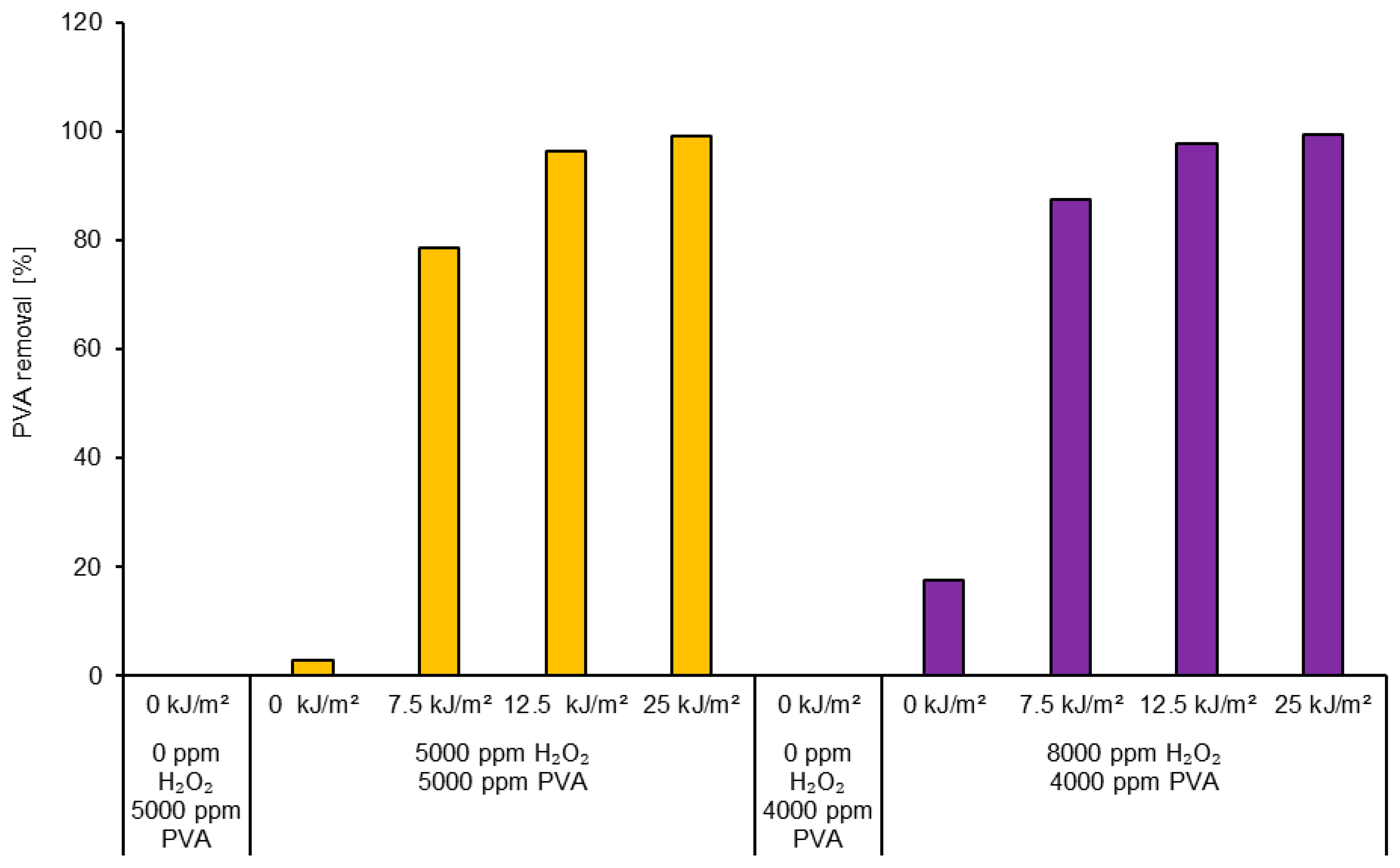 2.2. Lab-Scale Optimization of PVA Removal with an AOP (UV/H2O2)