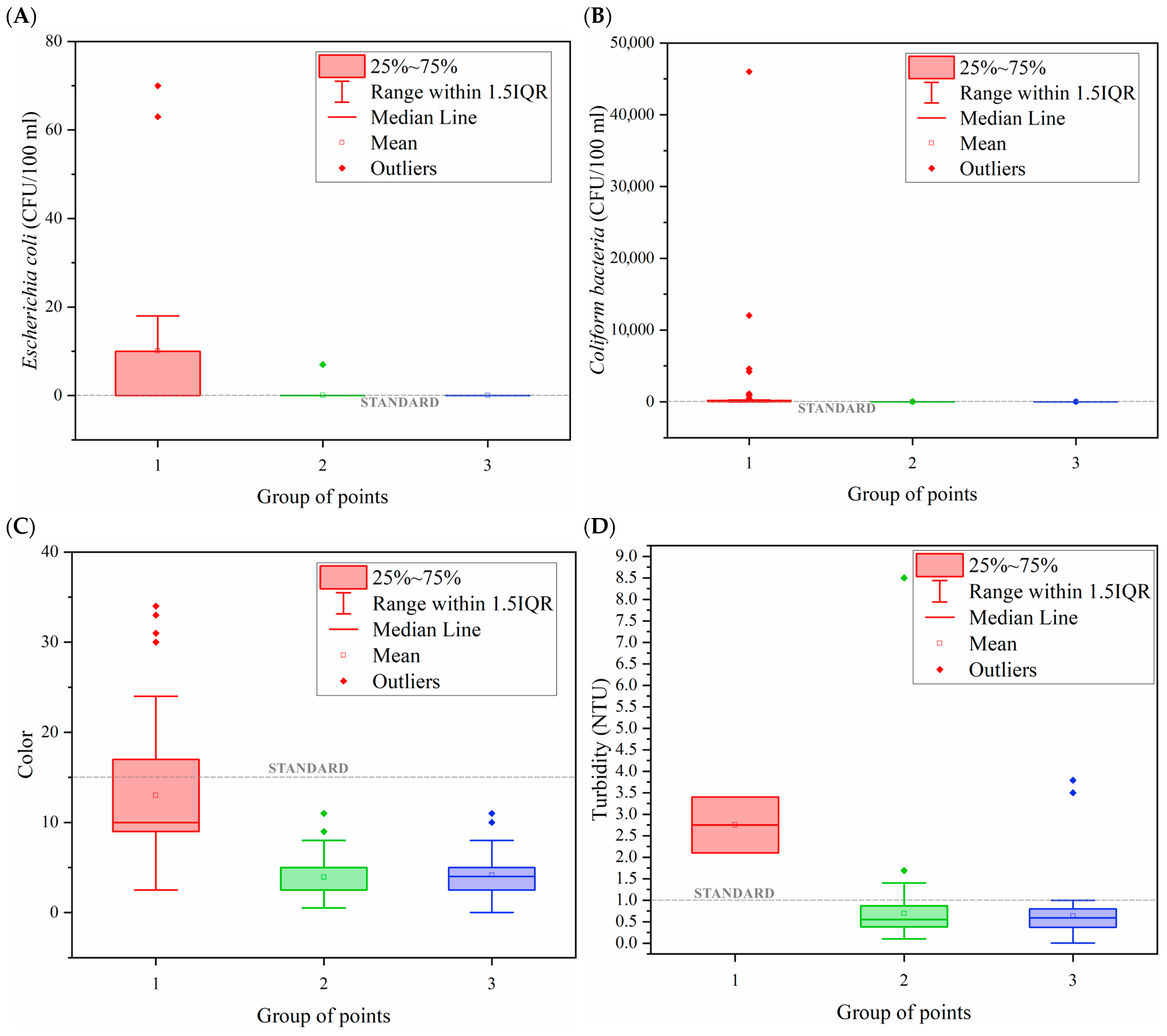 | Coliform bacteria (CFU/100 mL) | 6.58% | 98.91% | 99.11% |