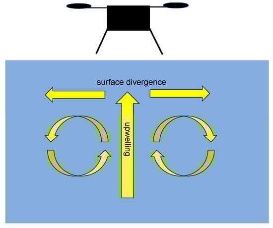 Conceptual model of water circulation under a hovering sUAS.