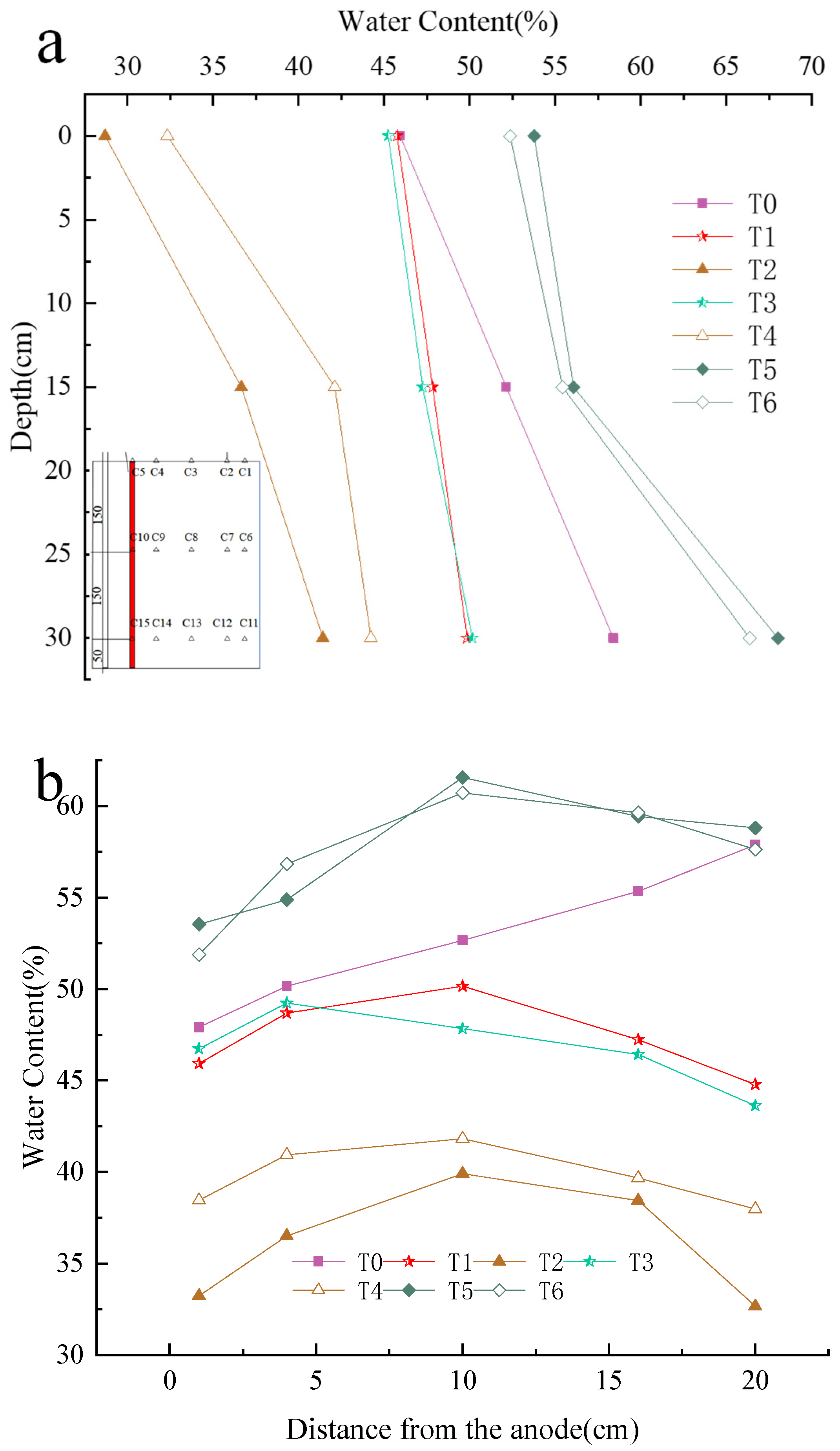 - Wang, J.; Fu, H.; Liu, F.; Cai, Y.; Zhou, J. Influence of electroosmosis activation time on vacuum electroosmosis consolidation of a dredged slurry. Can. Geotech. J. 2018, 55, 147–153. [Google Scholar] [CrossRef]