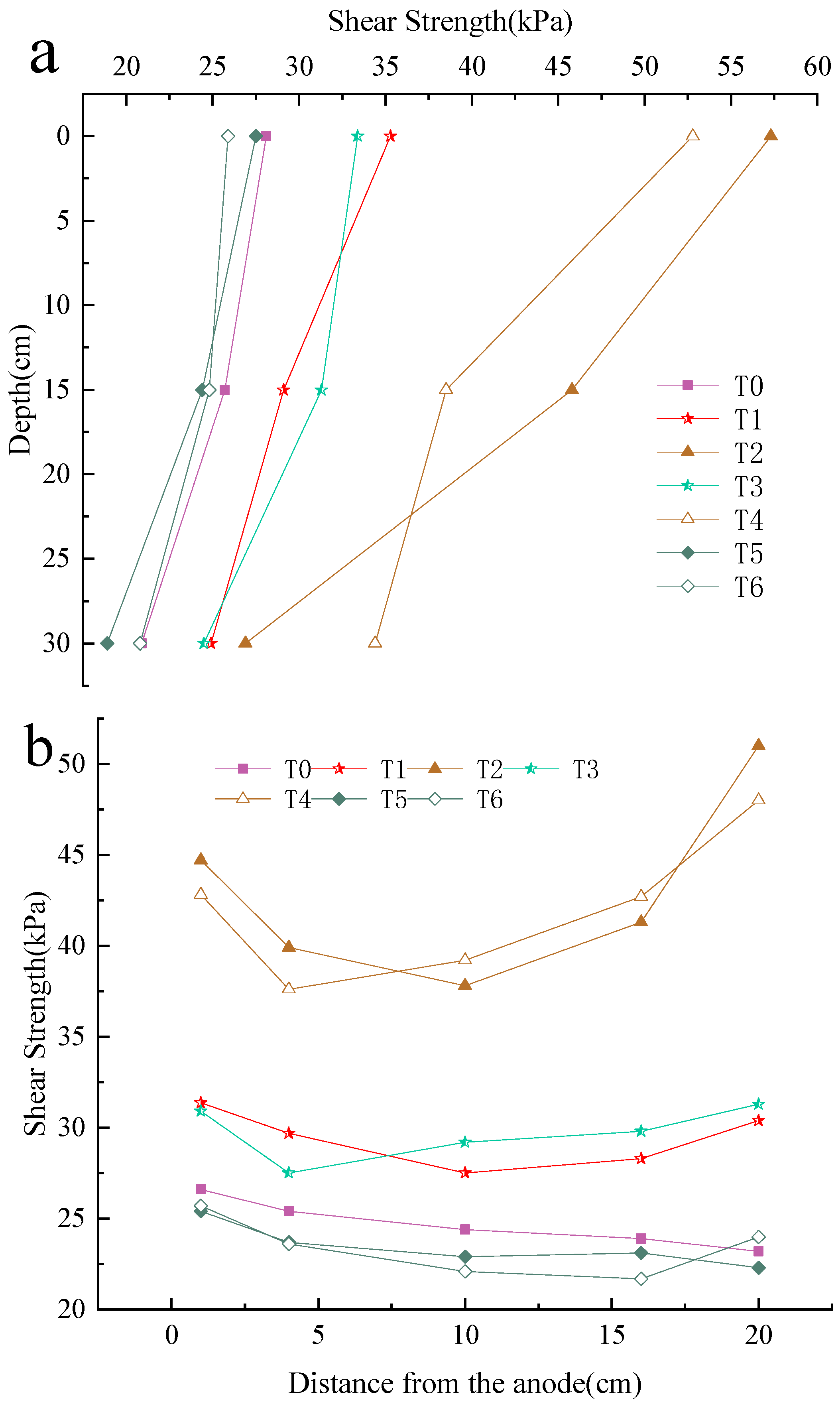 - Intermittent vacuum preloading (VP) alone showed suboptimal late-stage performance with high energy consumption. While synchronous VP–electroosmosis (EO) marginally improved water discharge but was less effective than alternating VP-EO, which boosted total water discharge by 46.1%. The alternating loading mode thus offers superior energy efficiency and consolidation efficacy for clayey soil reinforcement.