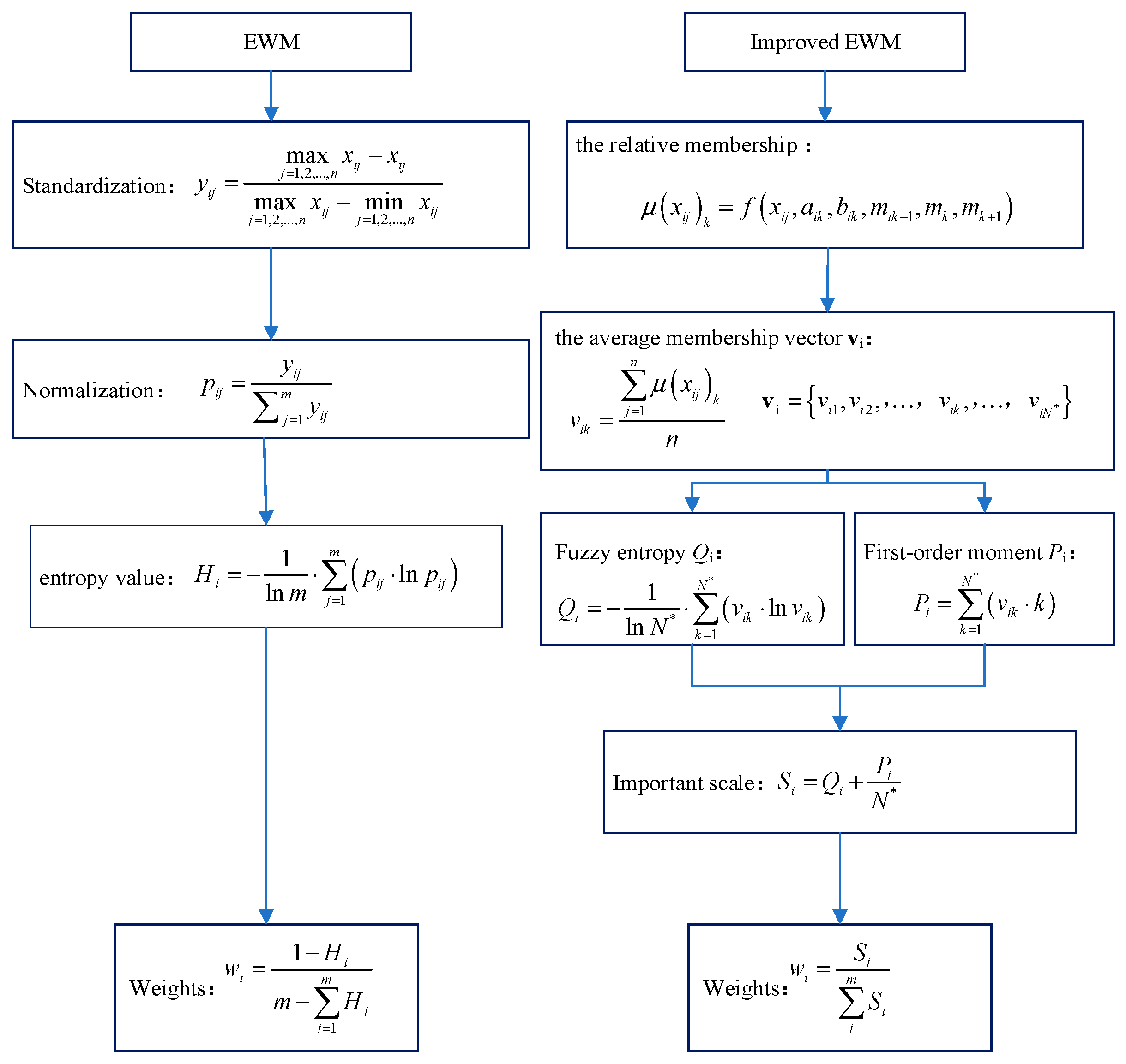i-th indicator. The I-EMW integrates these two dimensions to assign weights, adhering to the following principles [
