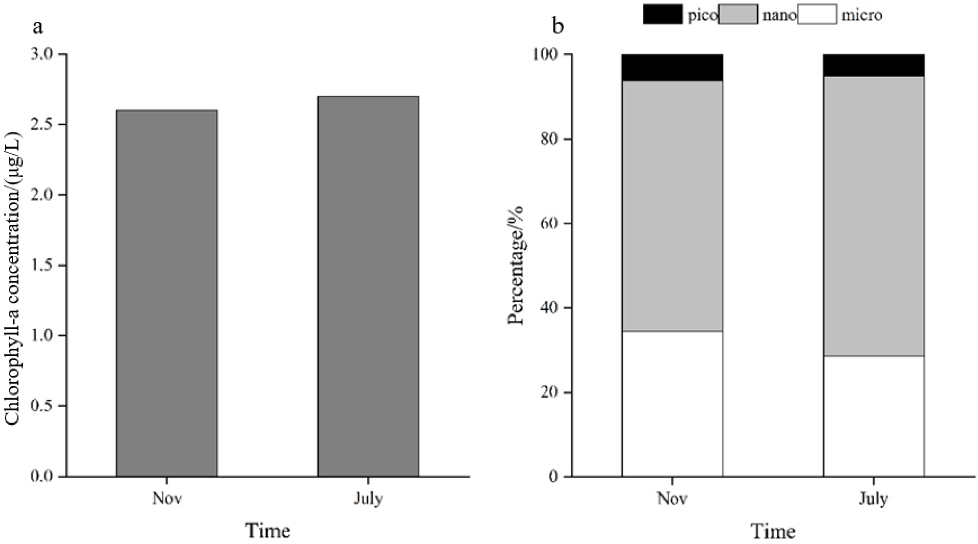 | 2018.11 | nano- and micro-Chl-a | Bacillariophyceae | Aulacoseira granulate (AGA) | 66% |