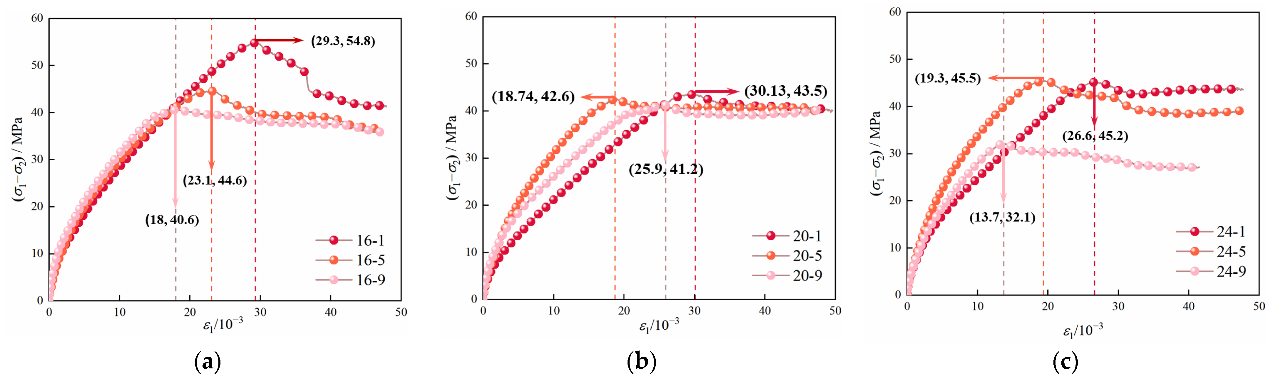3.1. The True Triaxial Loading Test Under Different Seepage Directions
