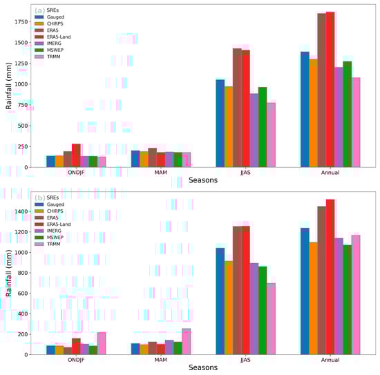 The performance of the SREs in capturing seasonal patterns, daily, monthly, and seasonal rainfall, was assessed. Extreme rainfall events ( high and low totals) were evaluated across the highland and lowland regions of the basin using two major evaluation metrics. The method evaluation metrics included categorical methods, which qualitatively assess rainfall detection, and continuous statistical methods, which quantify the agreement in rainfall amounts between SREs and rain gauge data by measuring errors, bias, and correlation.