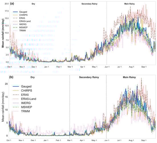 For alignment with available satellite and reanalysis rainfall data products, the daily gauged rainfall data were further constrained to the temporal window of 2005 to 2019 used in the analysis. This alignment ensured robust and comparable evaluations between gauged data and satellite/reanalysis rainfall estimates, enabling detailed analysis of the spatial and temporal performance of these rainfall products.