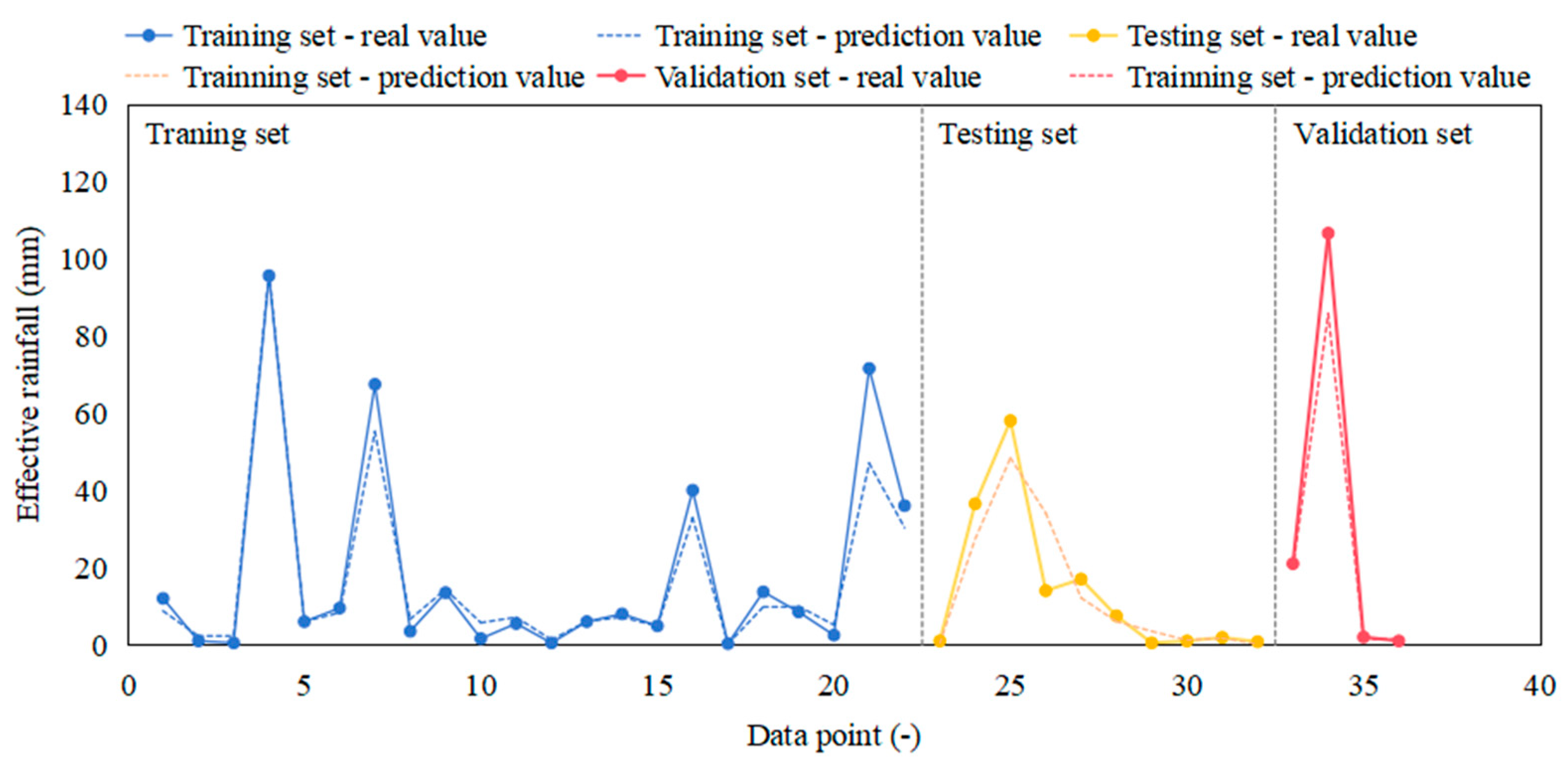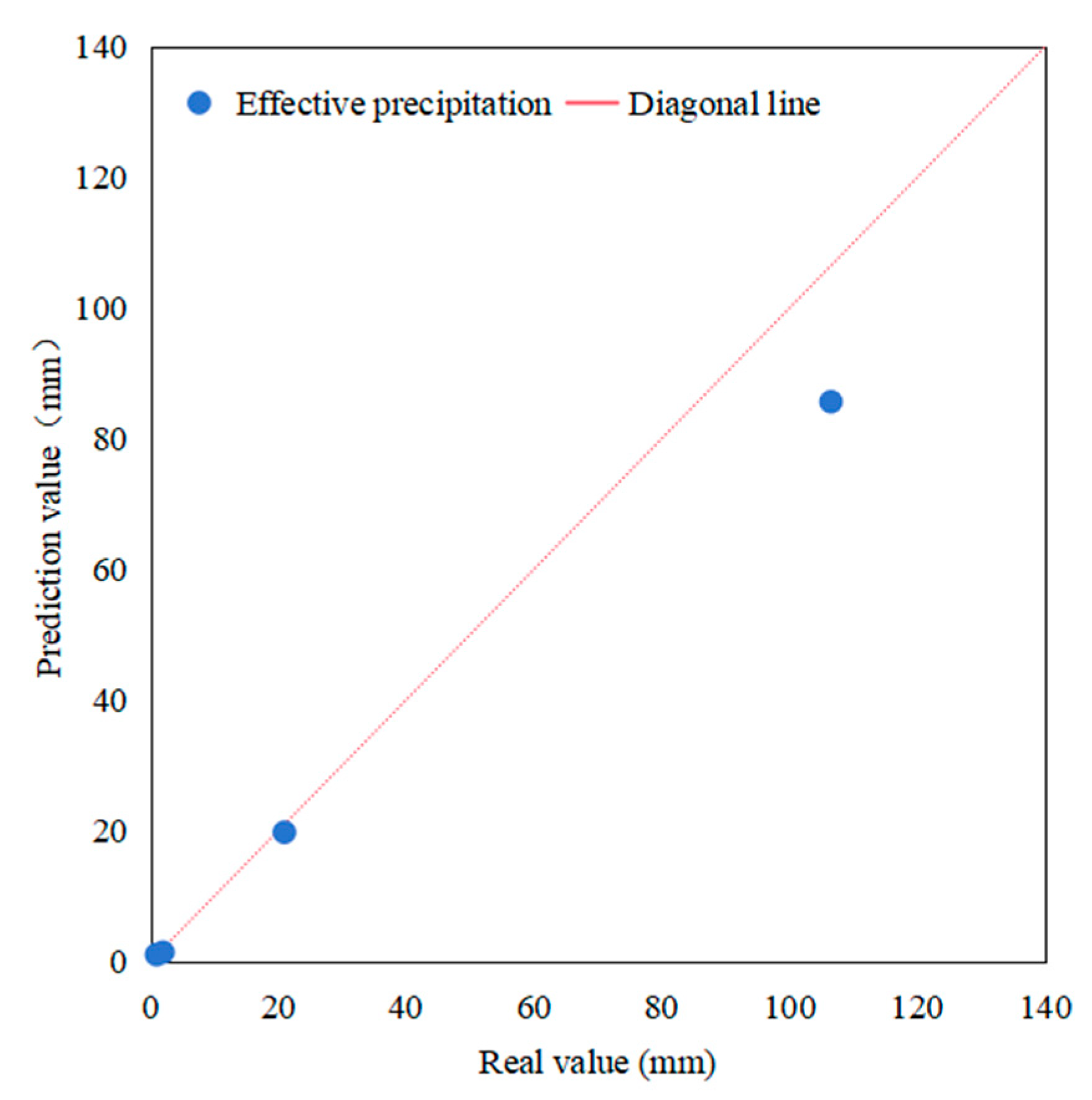 - The SVR model generally well predicts the effective precipitation utilization coefficient. It can be an alternative approach for prediction of effective precipitation utilization, which could be helpful to optimize irrigation schedules based on forecasted rainfall. However, the model underestimates high-value cases due to limited extreme event samples. Further improvements could be made by expanding the dataset and enhancing the predictor variables.