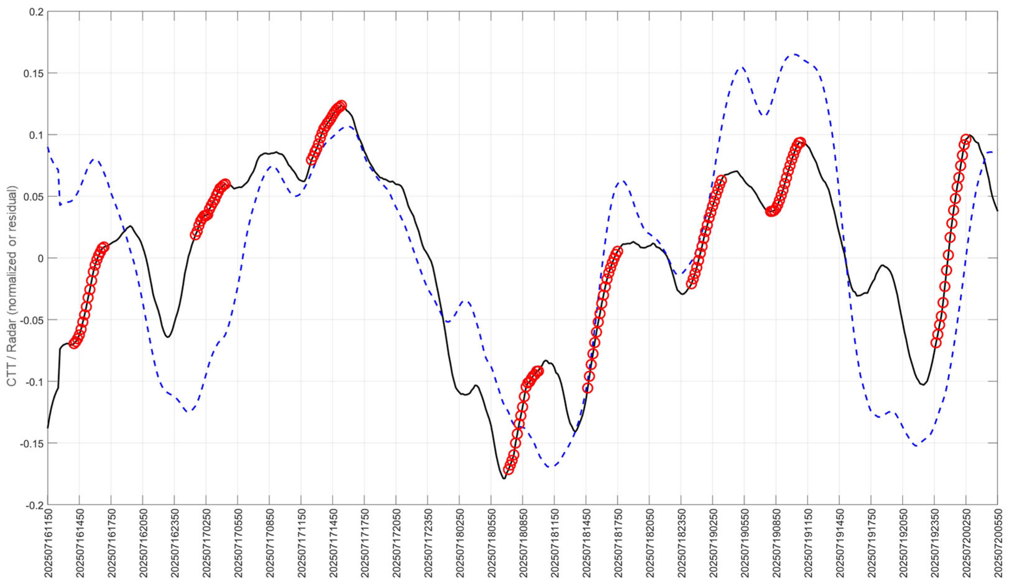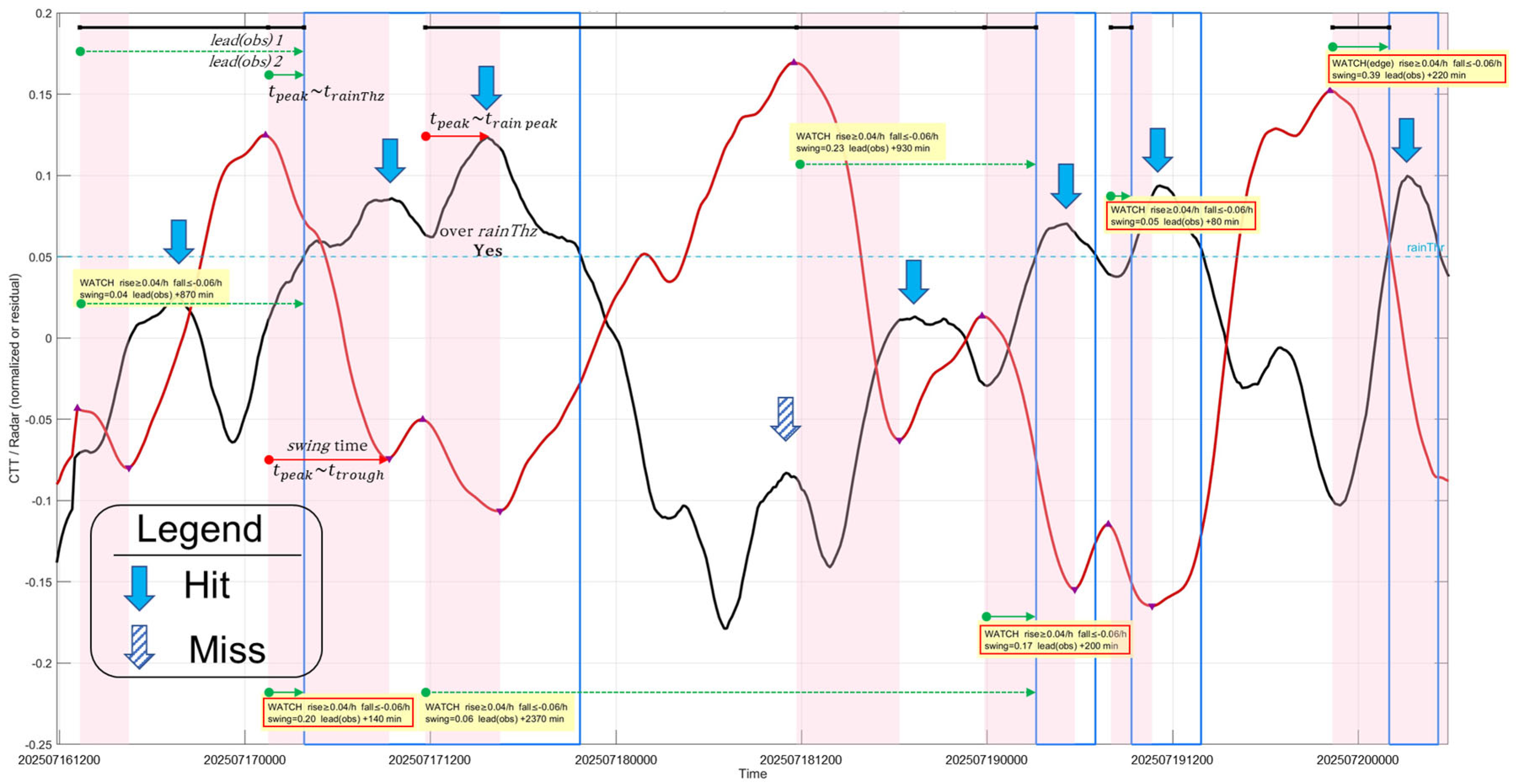 explicitly quantifies the temporal offset between CTT variations and subsequent rainfall intensification. This temporal metric provides a direct and operationally meaningful measure of lead time. Second, in contrast to complex multivariate or machine-learning models that often function as opaque systems [