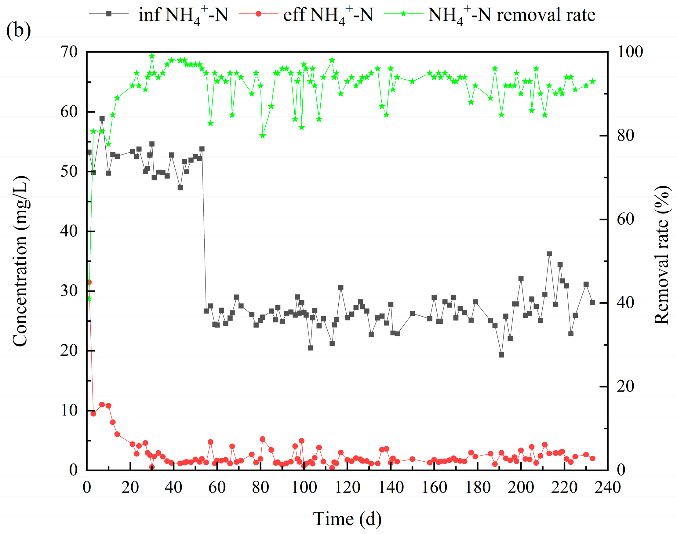 - Li, Y.; Zhao, W.; Wang, Q.; Wang, H.; Sun, Z.; Li, T.; Li, B.; Wang, J. Investigation of the cold-adapted membrane-aerated biofilm reactor: Performance analysis and community dynamics characterization. Chem. Eng. J. 2025, 519, 165157. [Google Scholar] [CrossRef]