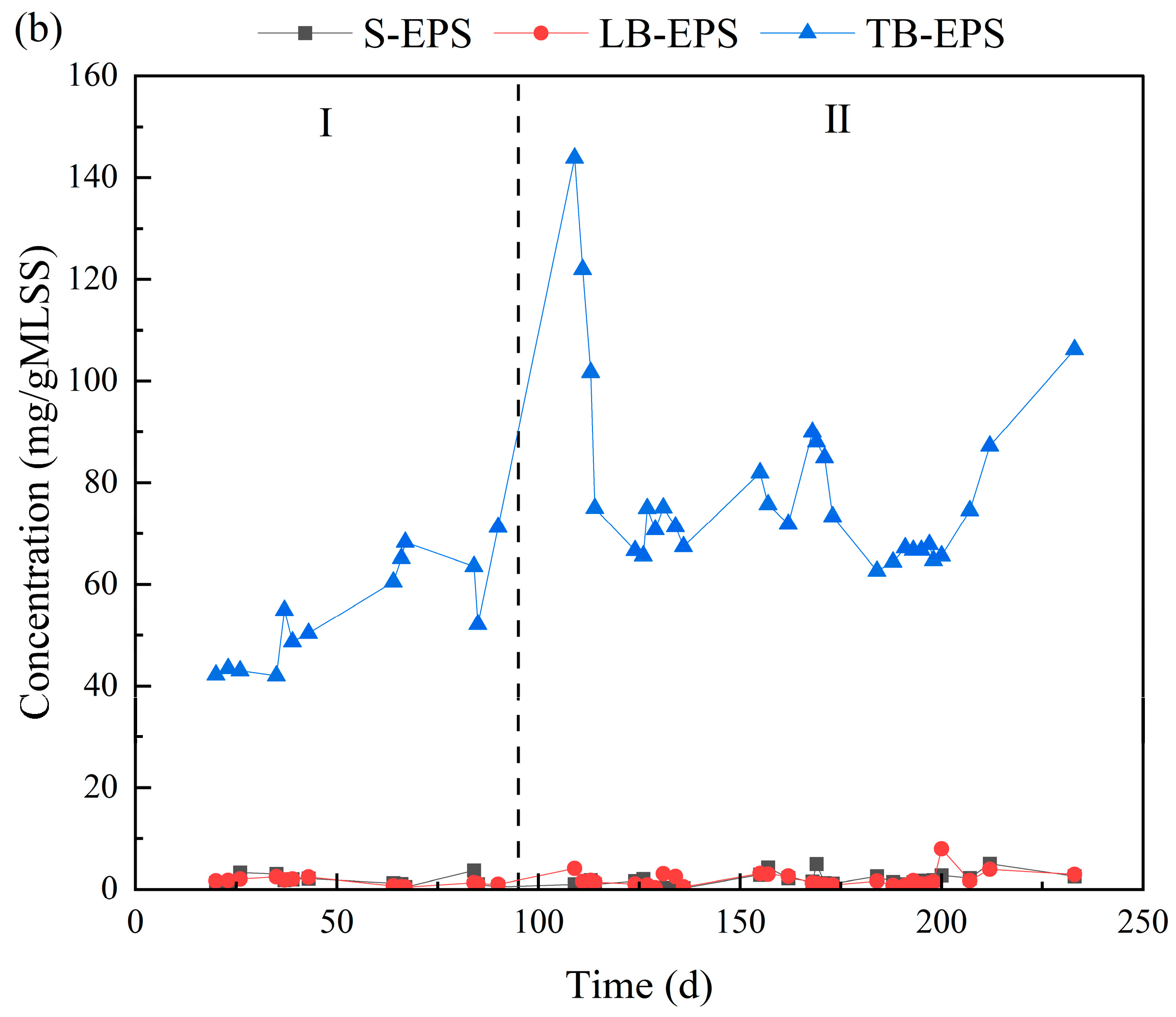 - Xie, F.; Tian, C.; Ma, X.; Ji, L.; Zhao, B.; Danish, M.E.; Gao, F.; Yang, Z. Seasonal temperature effects on EPS composition and sludge settling performance in full-scale wastewater treatment plant: Mechanisms and mitigation strategies. Fermentation 2025, 11, 532. [Google Scholar] [CrossRef]