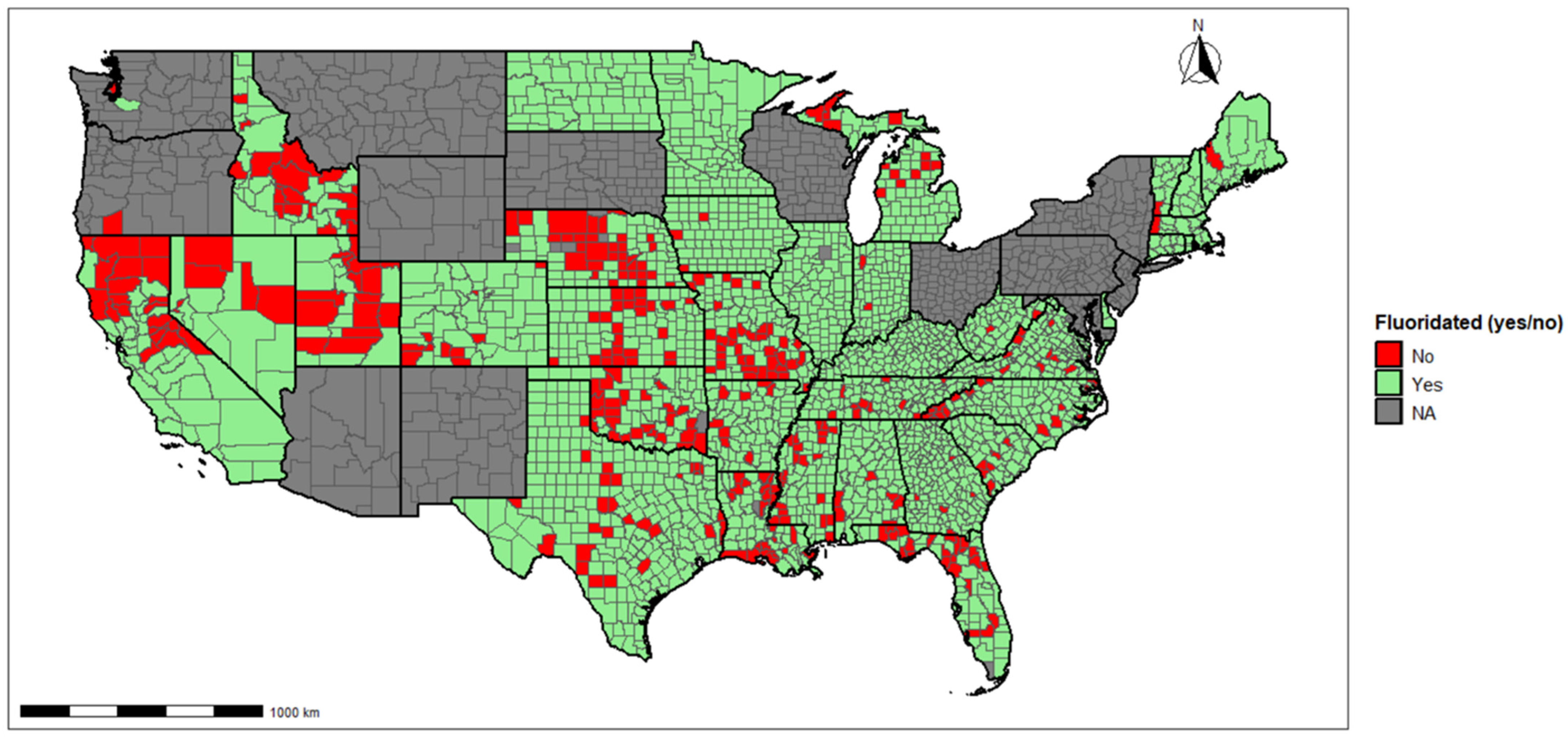 - Centers Fir Disease Control and Prevention. Community Water Fluoridation—State and County Level Statistics 2020. Available online: https://data.cdc.gov/Oral-Health/Community-Water-Fluoridation-State-and-County-Leve/hgyx-uuxz/about_data (accessed on 1 December 2025).