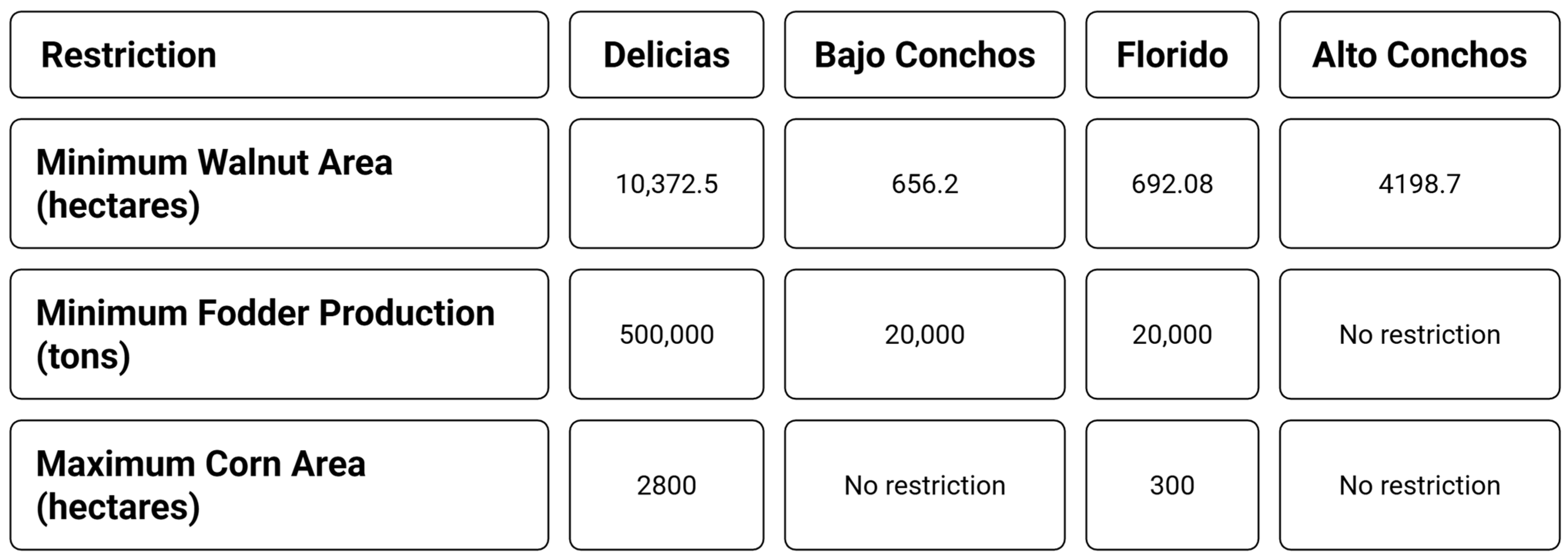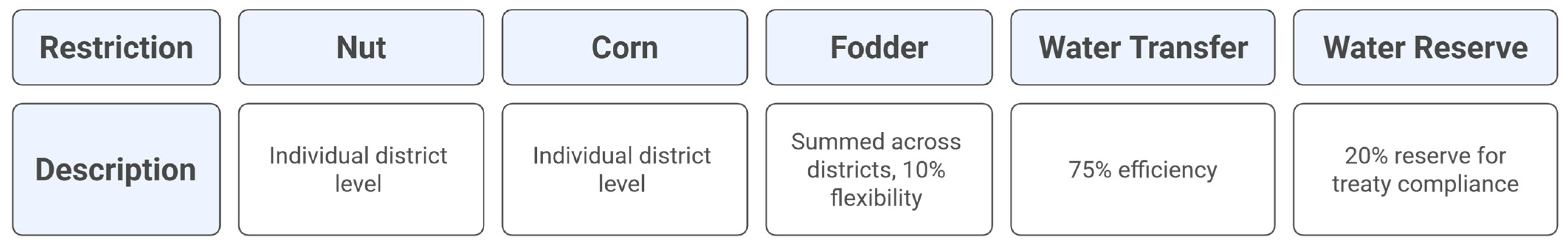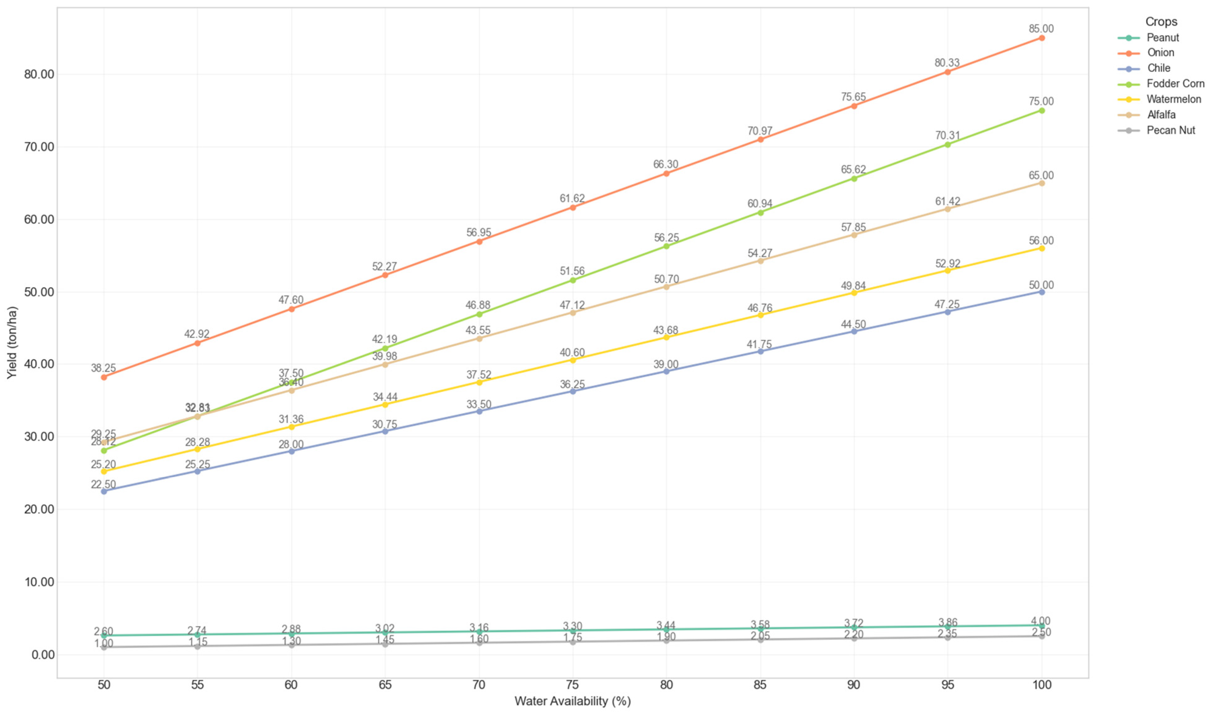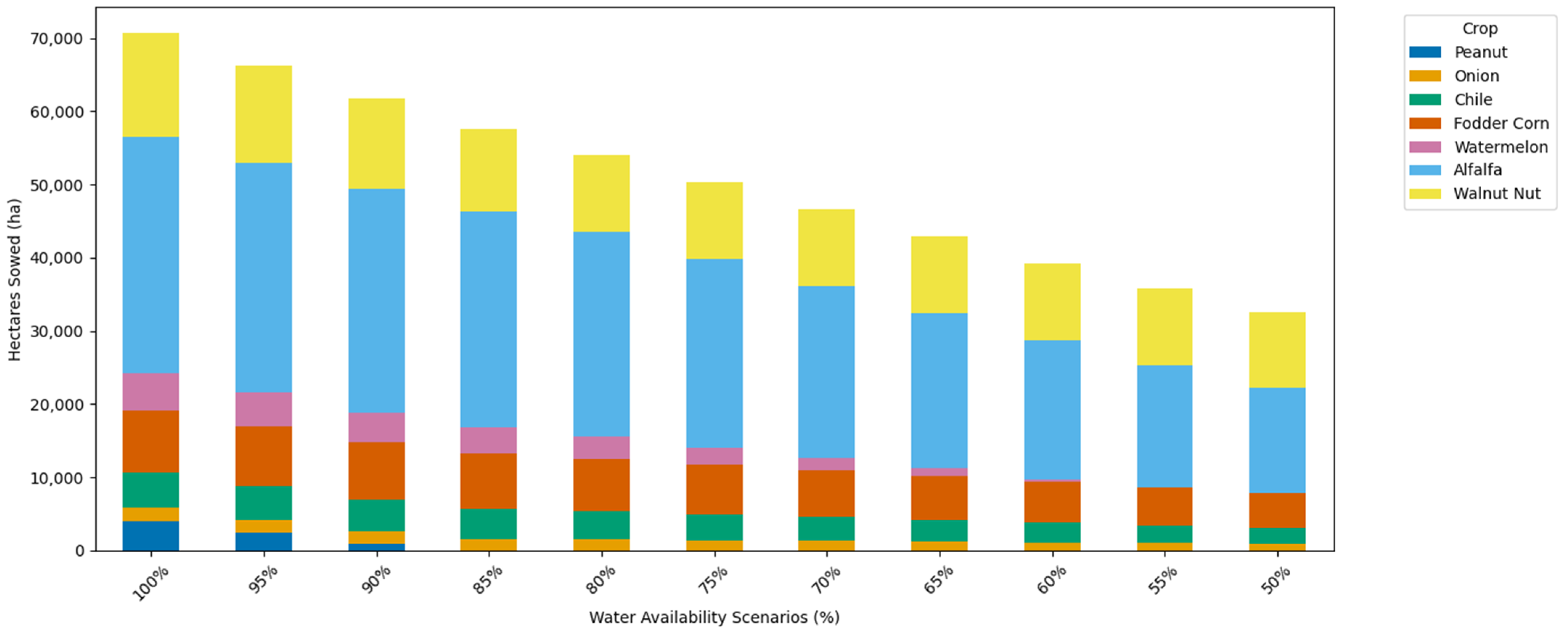 | Crop Area | CONAGUA | Irrigation Area reported in the irrigation statistics for the base year | Base Year (2020) | Ha | Used as part of the baseline data for the PMP Model |