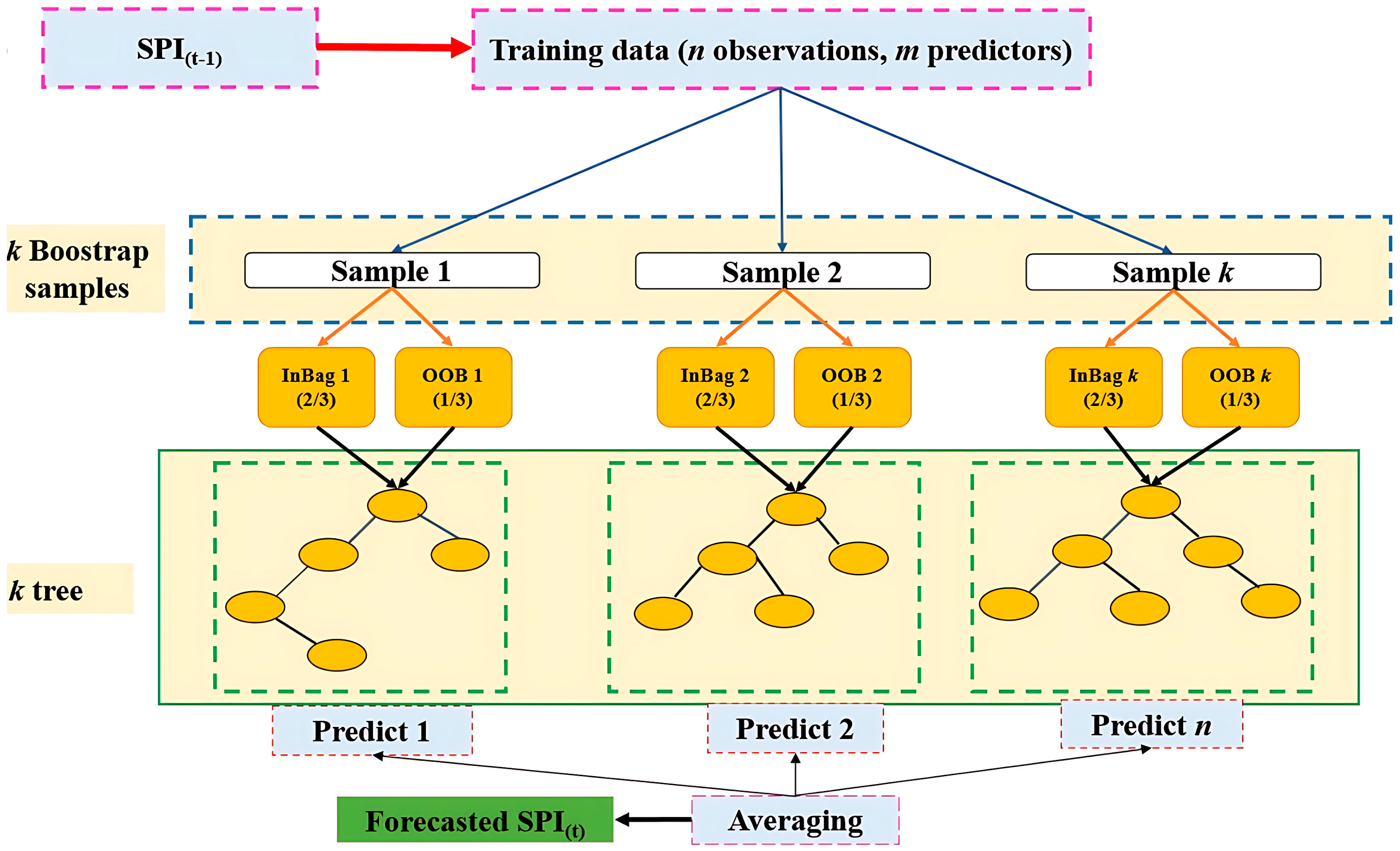 - Repeat the sampling and tree-building process.
