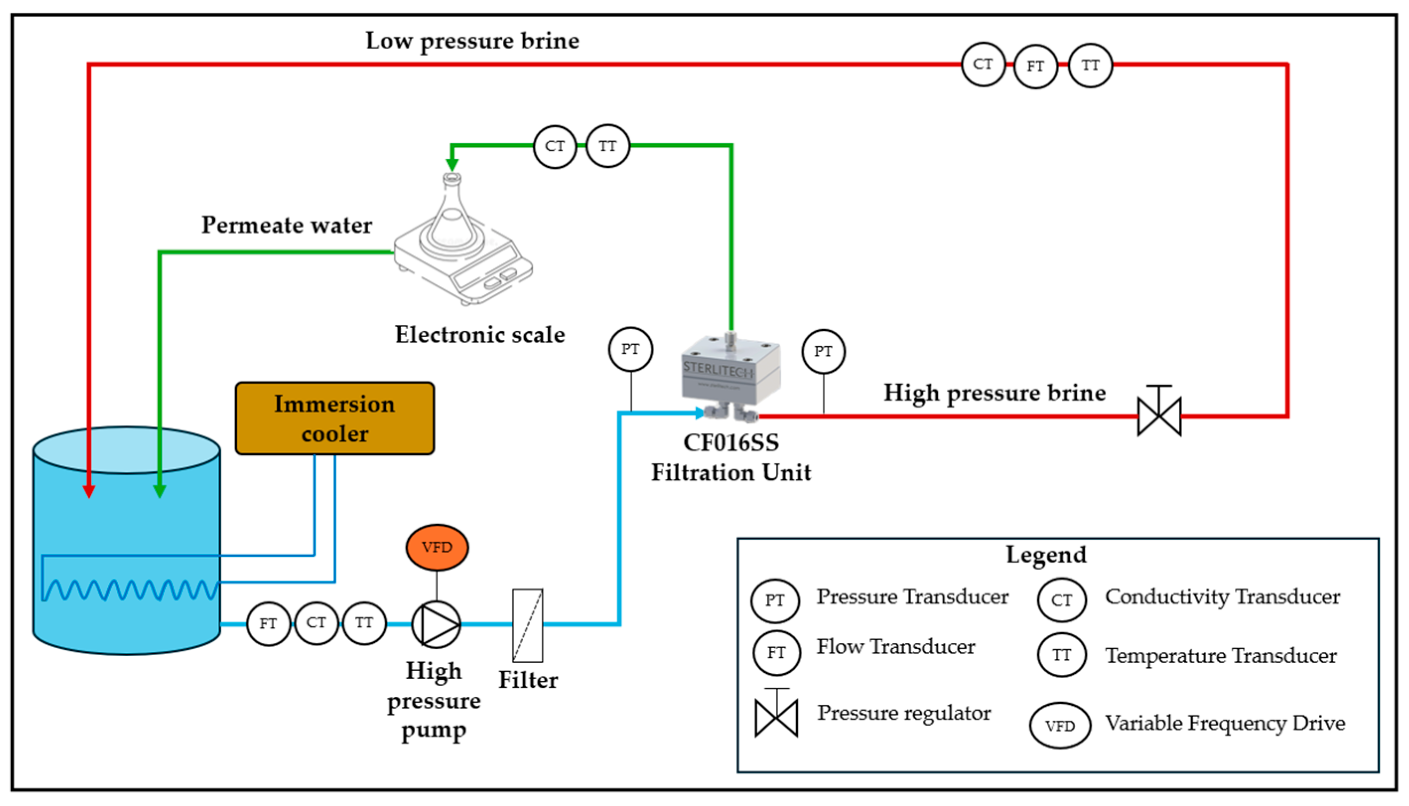 - Sterlitech Corporation. Crossflow Filtration Handbook; Starlitech Co.: Kent, WA, USA, 2018; Available online: https://www.sterlitech.com/media/wysiwyg/Manual2018/Manual_CF016SS_CF.pdf?srsltid=AfmBOoqnfcFFYij5U8lKDfBzSDHDUEIcatSymoeZEN0LOurpuX996oWL (accessed on 24 April 2025).