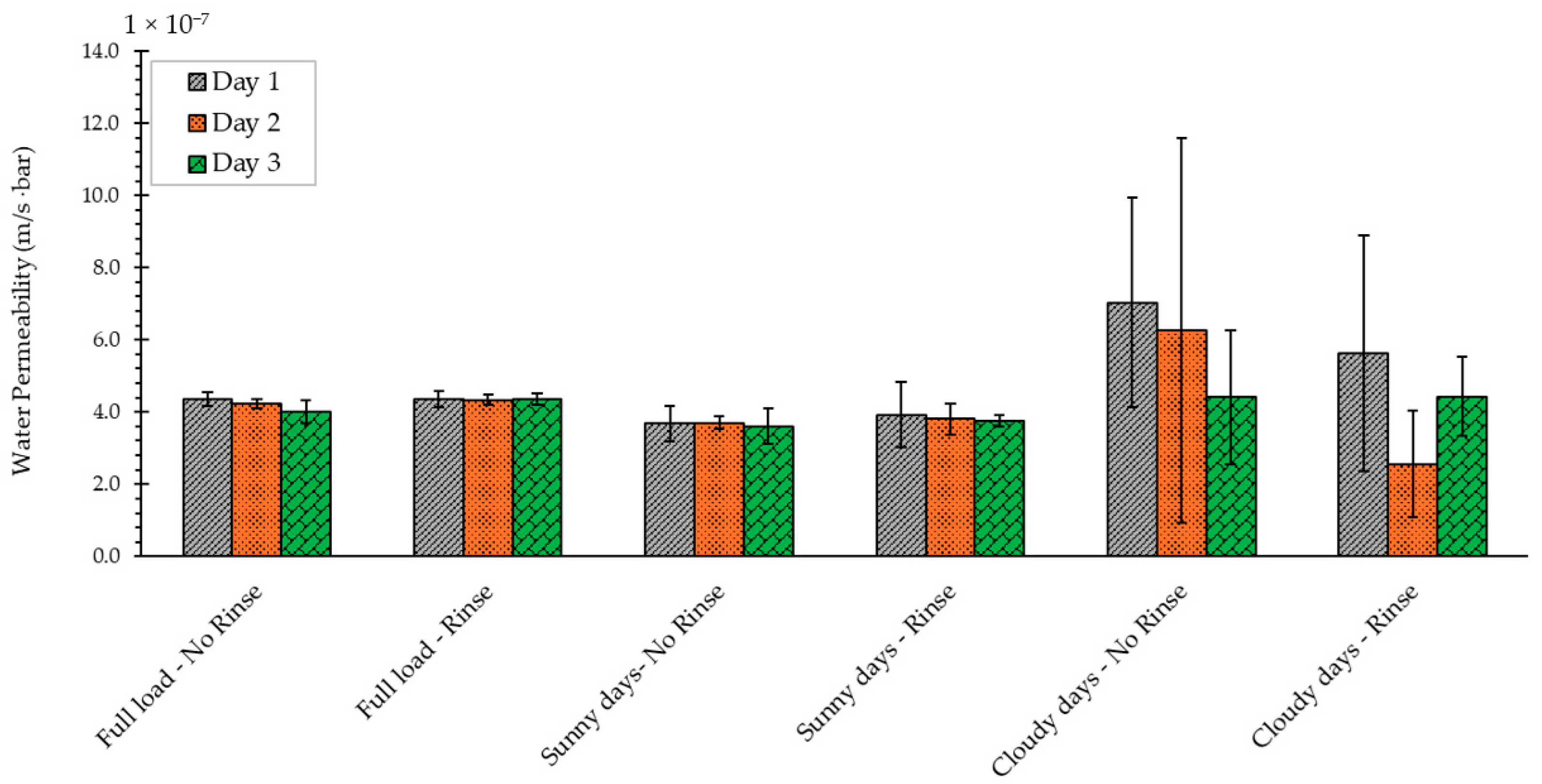 4.3. Comparison of the Effect of Operating Conditions on Water Permeability