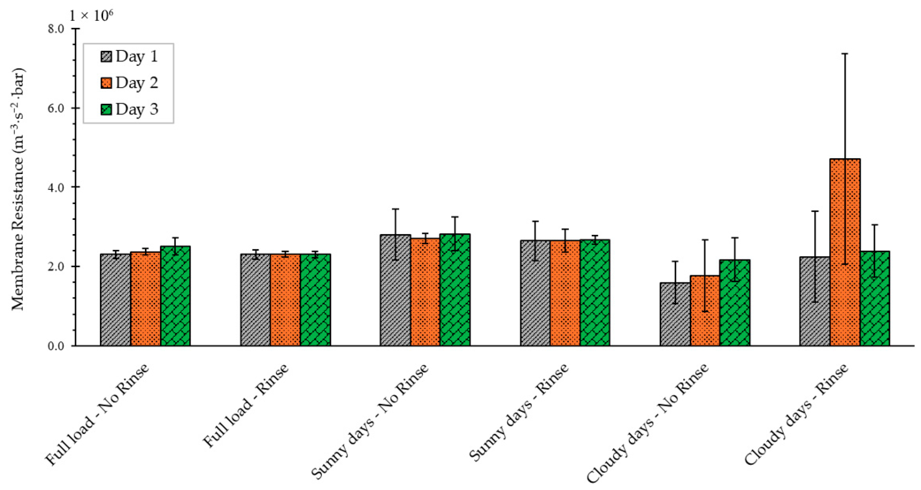 4.4. Comparison of the Effect of Operational Conditions on Membrane Resistance