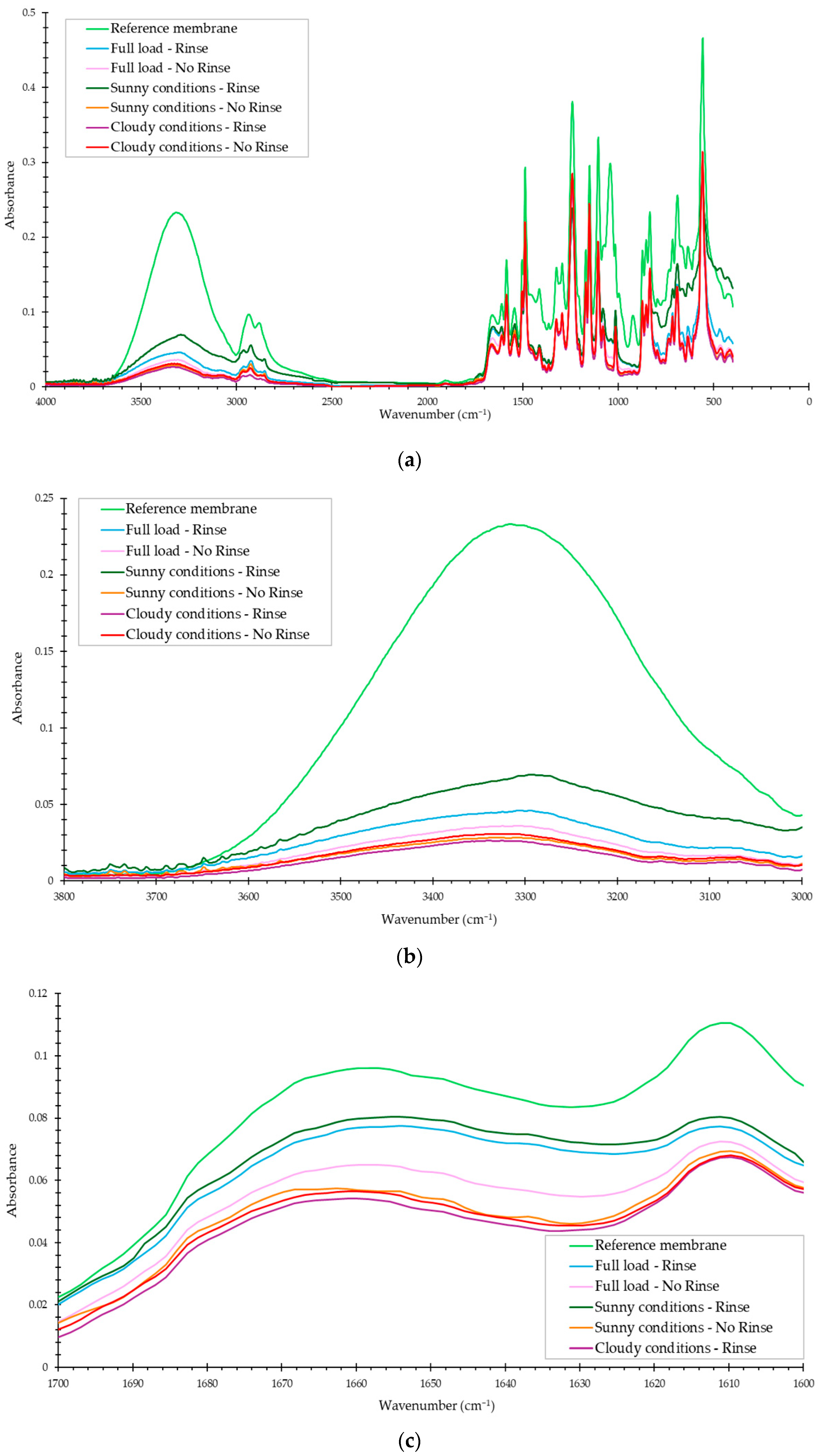 3.3. Membrane Autopsy via FTIR/ATR Analysis