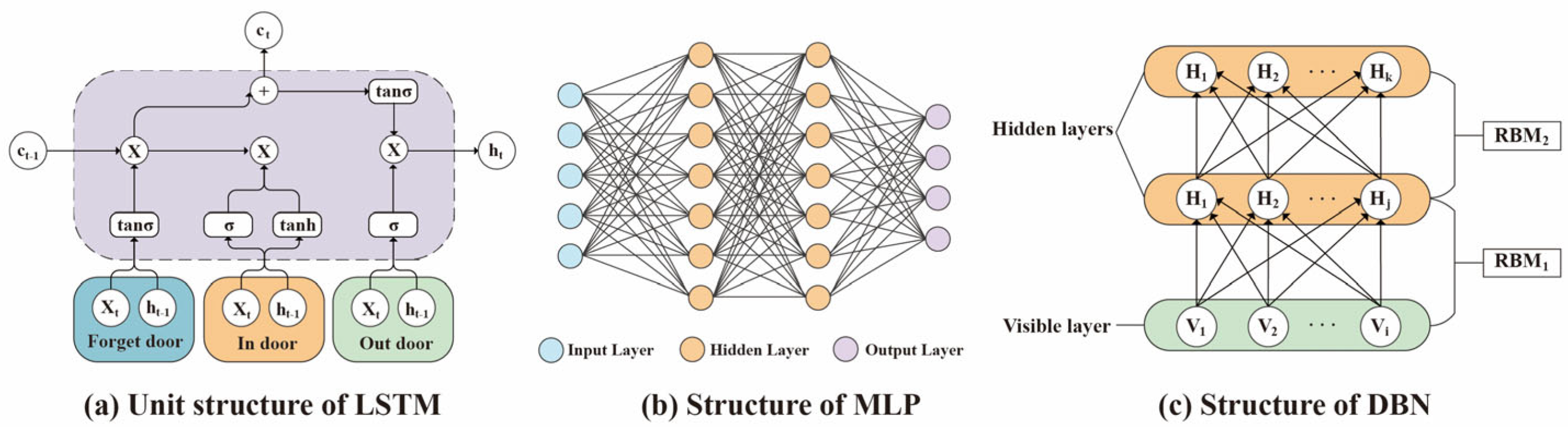 There are many deep learning algorithms with different principles and advantages. In this article, three different kinds of deep learning algorithms, Long-Short Term Memory Network (LSTM), Multilayer Perceptron (MLP), and Deep Belief Network (DBN), are selected to create construction parameter prediction models. The structures of these algorithms are shown in