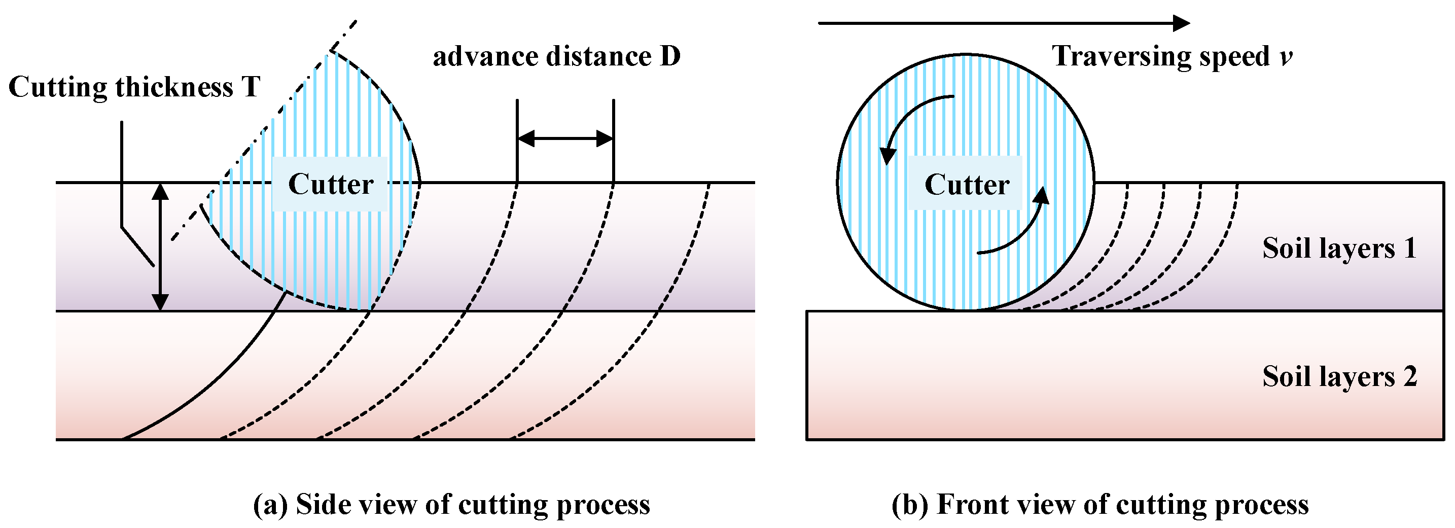 D is the advance distance of the cutter, m;