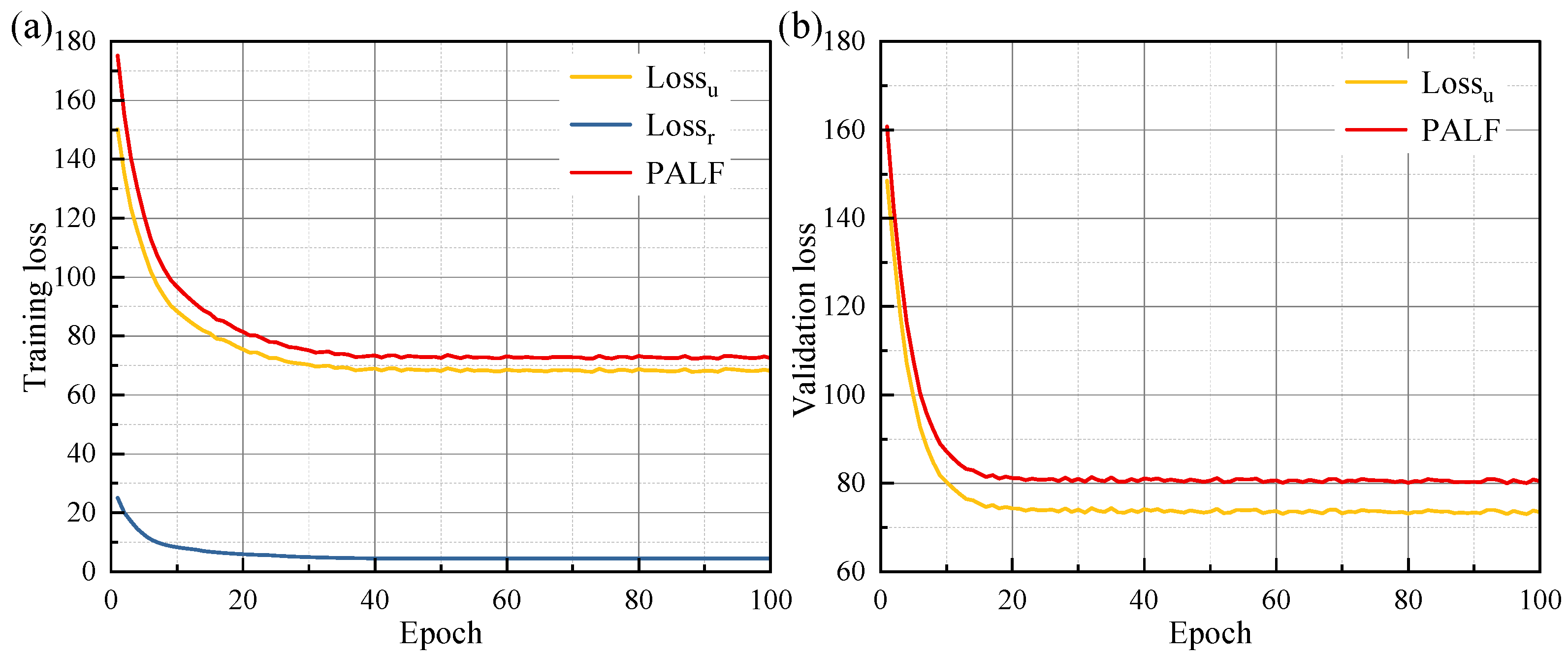 The validation curves demonstrate a similar trend: both Lossu and PALF decrease sharply at the beginning of training and remain stable across subsequent epochs without exhibiting divergence or oscillation. Importantly, the validation loss stays close to the training loss throughout the optimization process, suggesting that the introduction of PALF does not induce overfitting. Instead, the physical constraint contributes to smoother convergence and improved generalization by guiding the model toward physically plausible solutions.