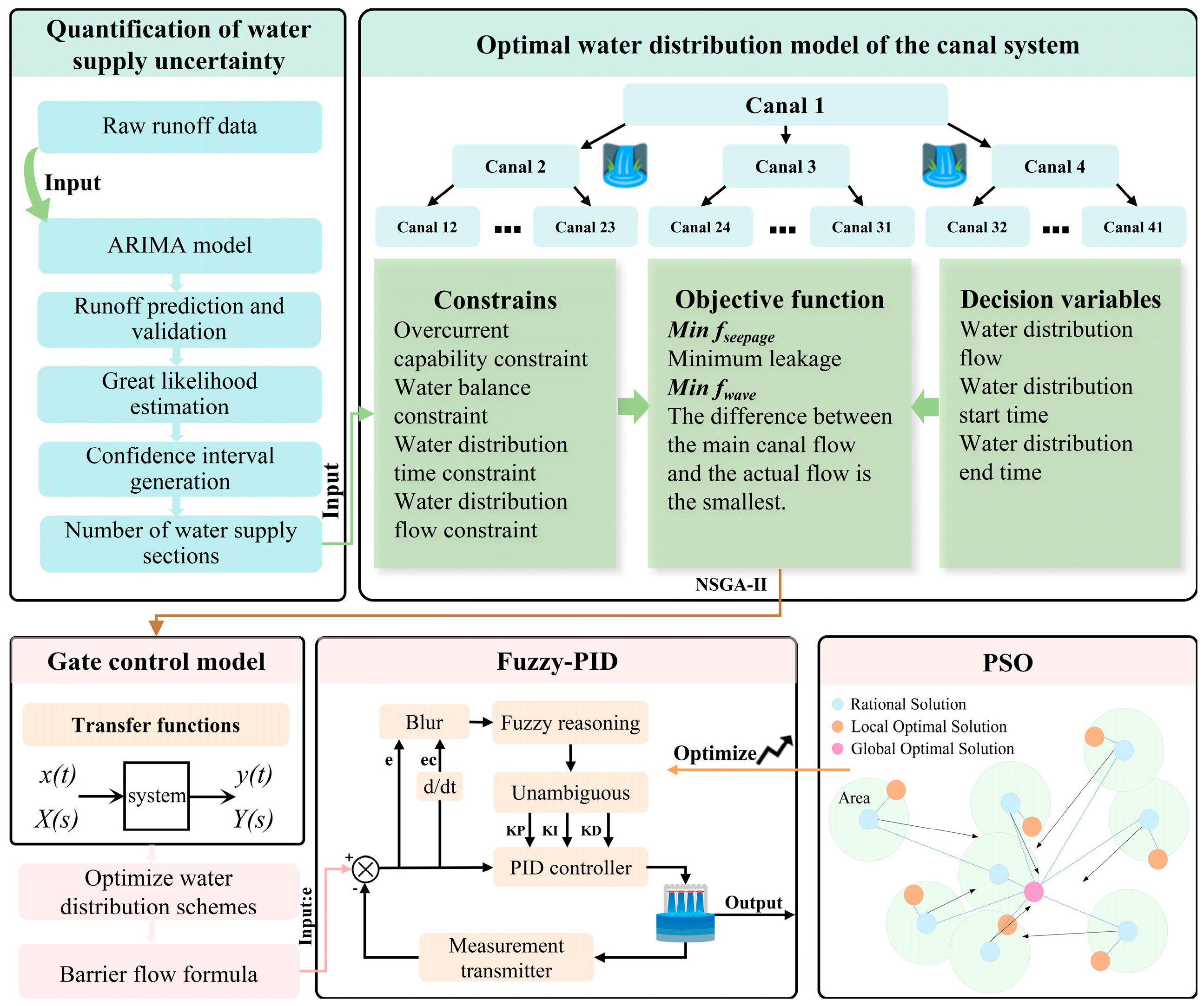 - Zhou, K.; Fan, Y.; Gao, Z.; Yang, M.; Wang, Y.; Yang, Y. An Optimal Water Distribution Model for Canal Systems Based on Water Level. Sci. Rep. 2025, 15, 12350. [Google Scholar] [CrossRef] [PubMed]