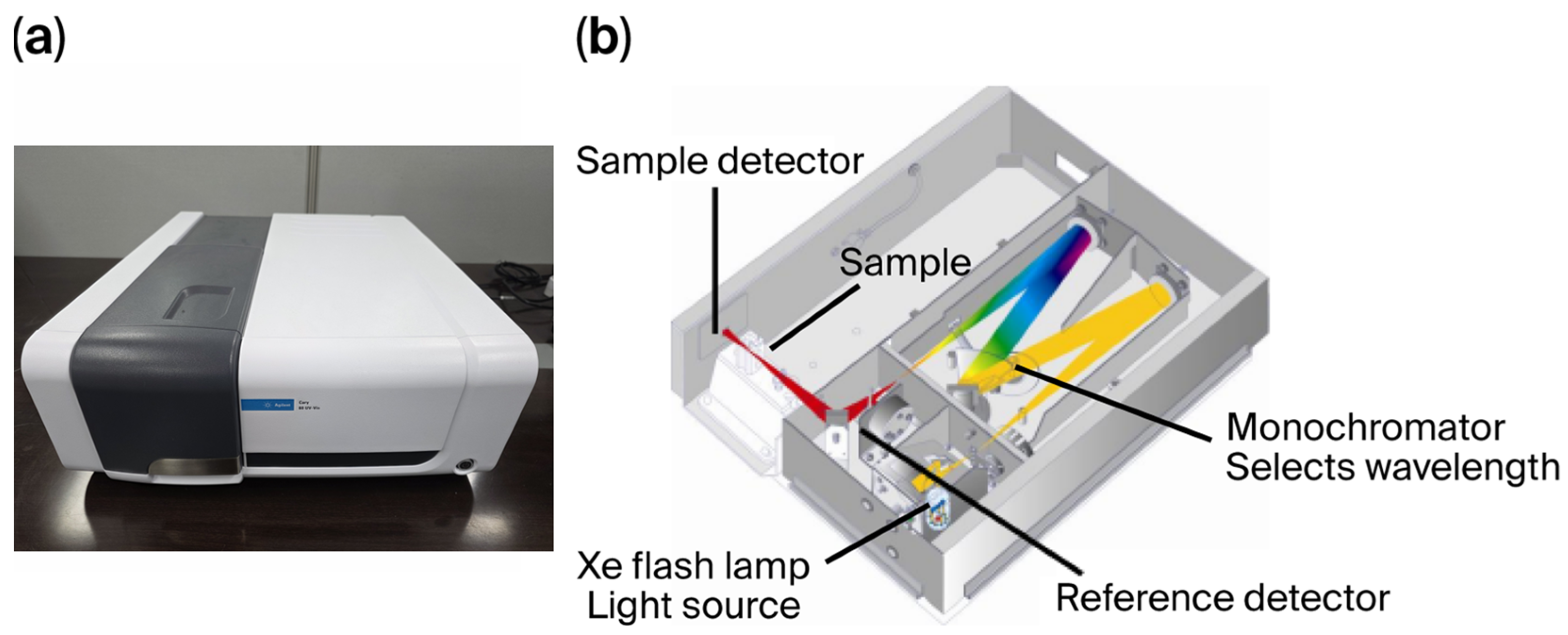 The commercial product used for absorbance analysis in this study was the Agilent Cary 60 UV-Vis spectrophotometer (