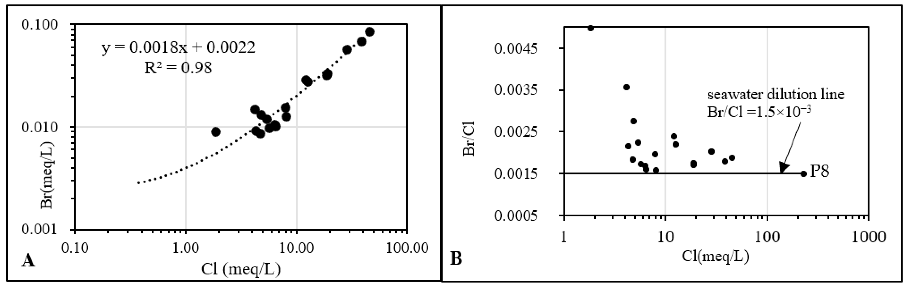 - Alcalá, F.J.; Custodio, E. Using the Cl/Br ratio as a tracer to identify the origin of salinity in aquifers in Spain and Portugal. J. Hydrol. 2008, 359, 189–207. [Google Scholar] [CrossRef]