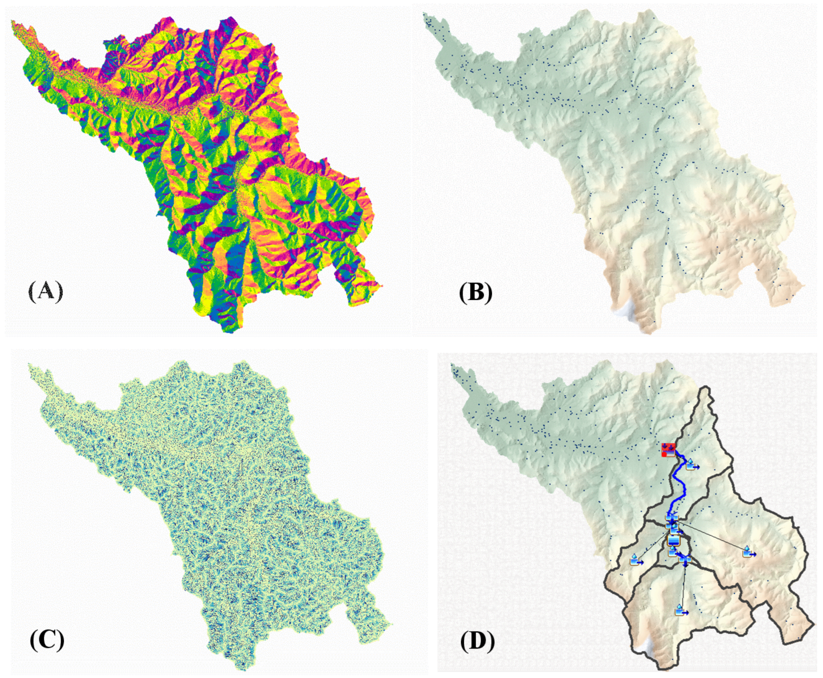 - Dixon, B.; Uddameri, V. Watershed Delineation. In GIS and Geocomputation for Water Resource Science and Engineering; John Wiley & Sons, Ltd.: Hoboken, NJ, USA, 2015; Chapter 20; pp. 297–312. [Google Scholar] [CrossRef]
