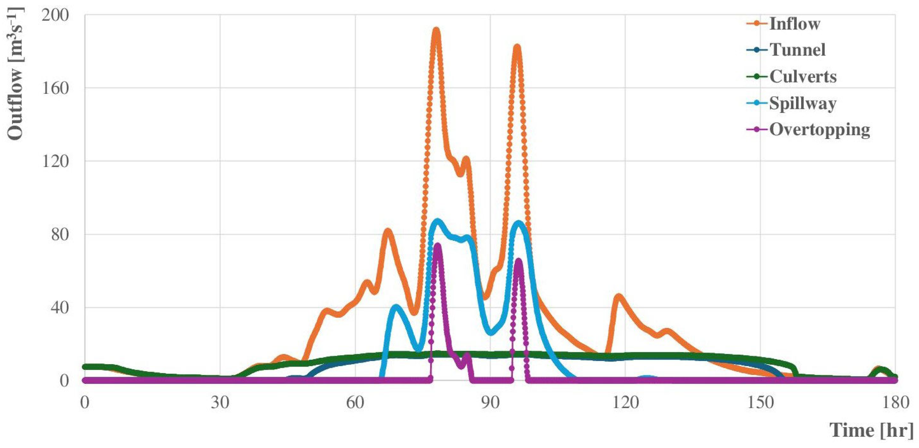2.6. Computational Fluid Dynamics to Asses Reservoir Routing